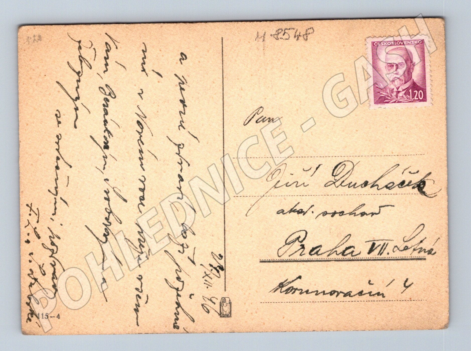 Vánoční pohlednice Anděl s dárky – ČSR, malý formát, do 1950