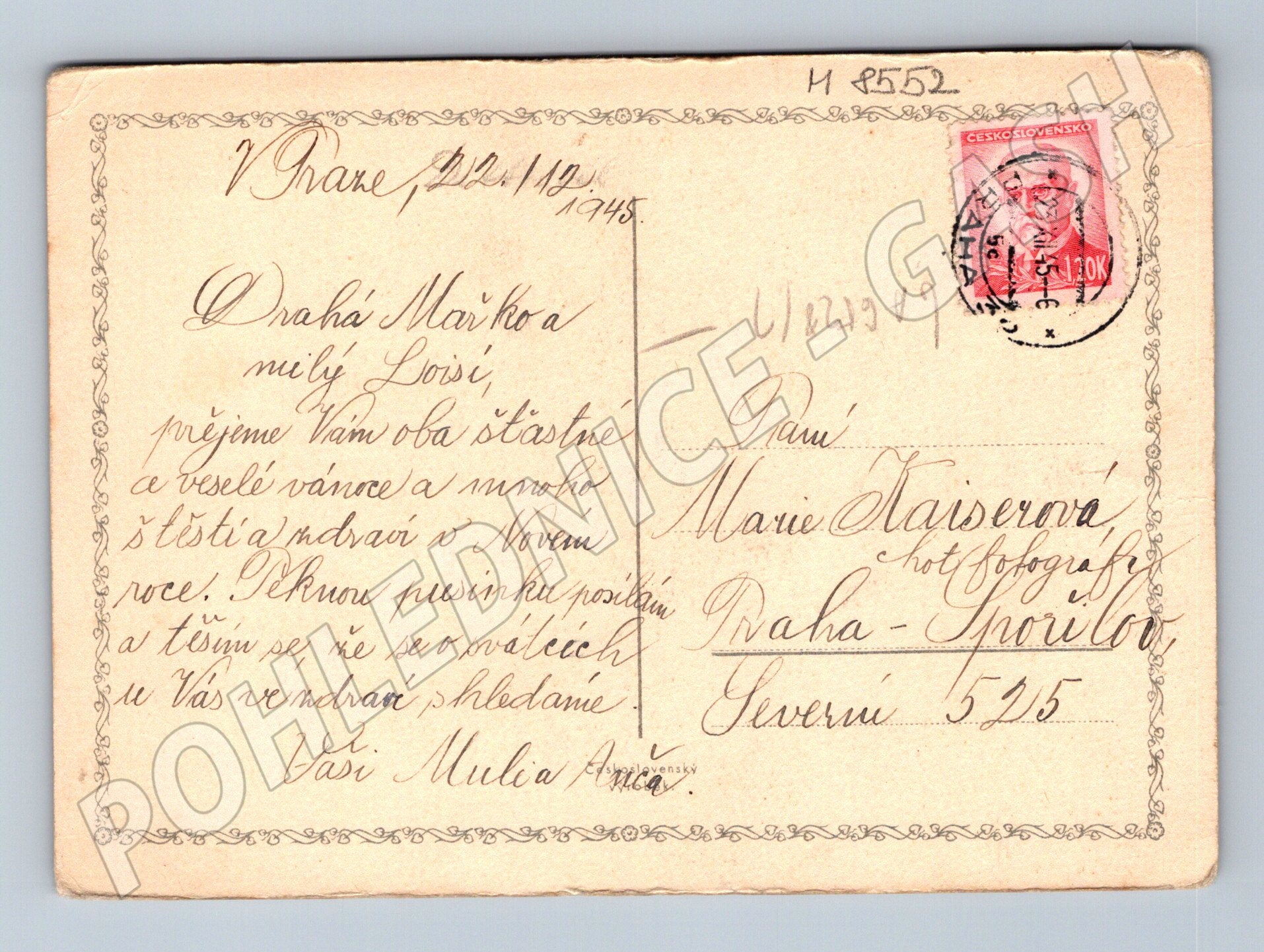 Historická pohlednice z období první poloviny 20. století, zaslaná v roce 1943. Na přední straně je krásná barevná kresba venkovské chalupy, podepsaná autorem Horst Brück. Pohlednice je vyplněná, adresovaná do Prahy a opatřená známkou a dobovým razítkem z období Protektorátu Čechy a Morava. Zadní strana obsahuje ručně psané vánoční a novoroční přání. Stav viz foto – místy drobné opotřebení odpovídající stáří. Ideální pro sběratele historických pohlednic a zájemce o ukázky česko-německého malířství a dobové korespondence.