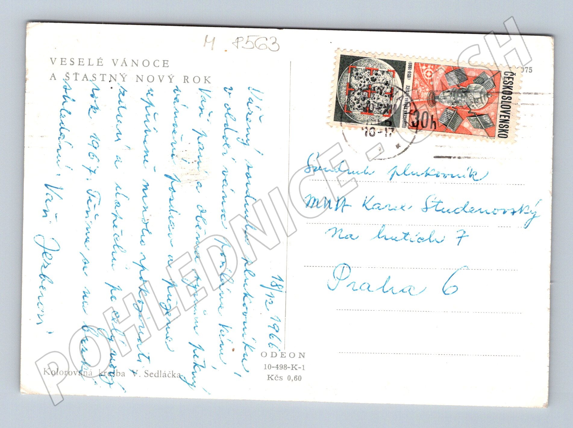Pohlednice Zima – V. Sedláček, 1966, kolorovaná, prošlá poštou