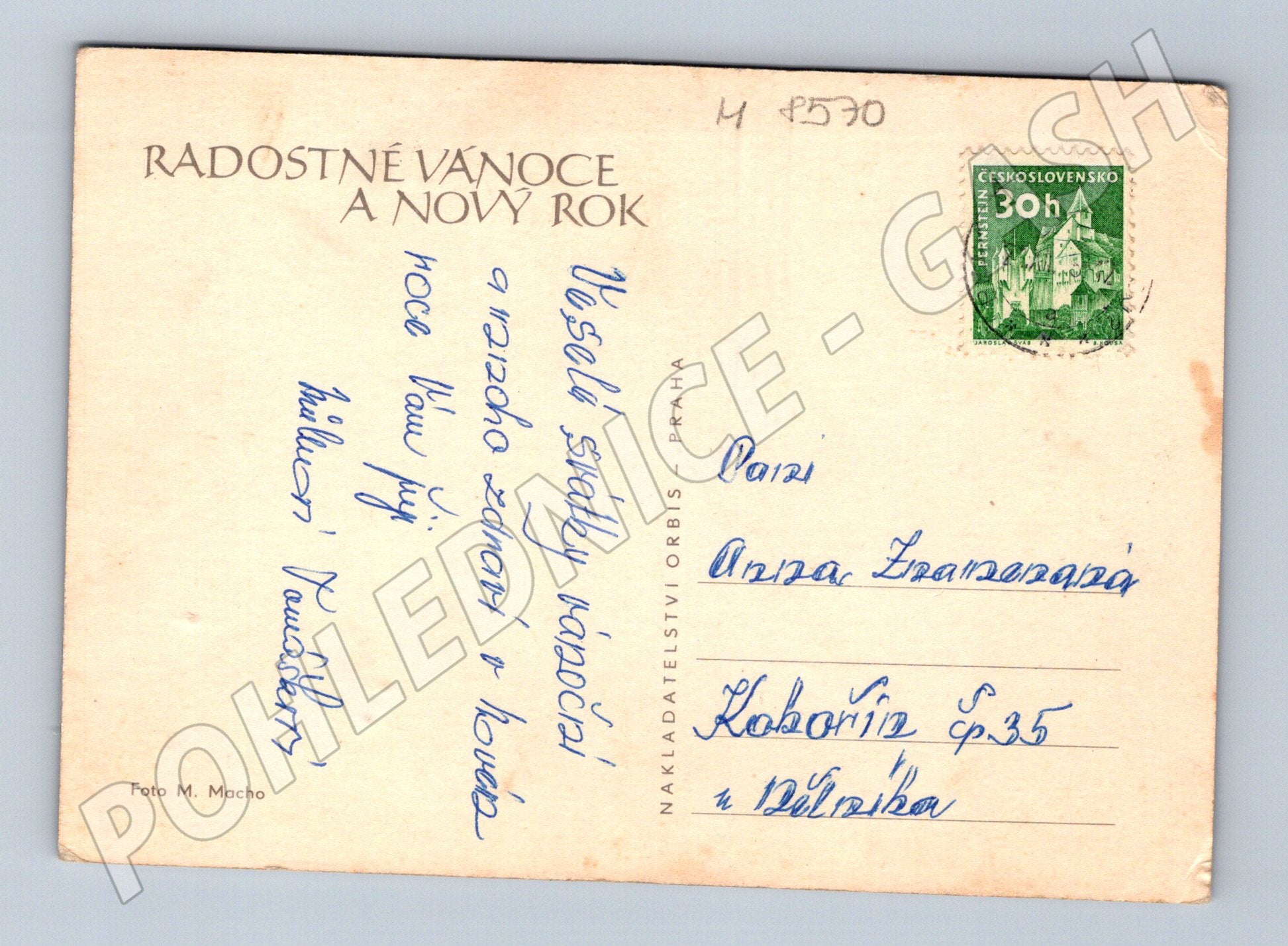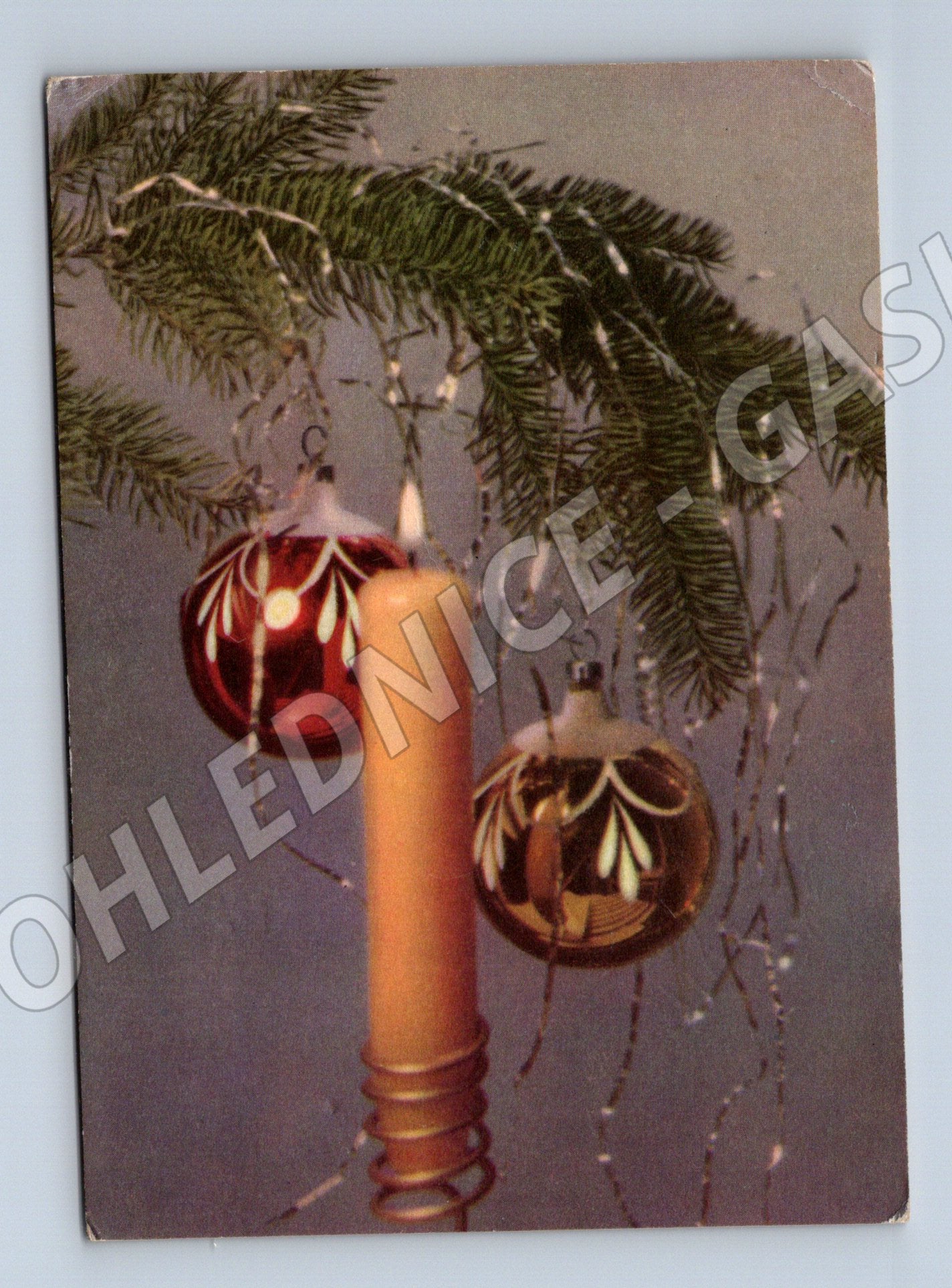 Originální pohlednice s vánočním motivem, která byla zaslána v období Československa. Na lícní straně pohlednice je krásná zimní kompozice s větvičkou jehličnanu, vánočními ozdobami a svíčkou. Na zadní straně najdete tištěné přání Radostné Vánoce a Nový rok a rukopisný vzkaz. Součástí je také stará československá známka v hodnotě 30 haléřů. Pohlednice je opatřena originálním razítkem a vyznačuje se dobovou atmosférou a patinou stáří. Ideální pro sběratele historických vánočních pohlednic, nebo pro milovníky retro dekorací.