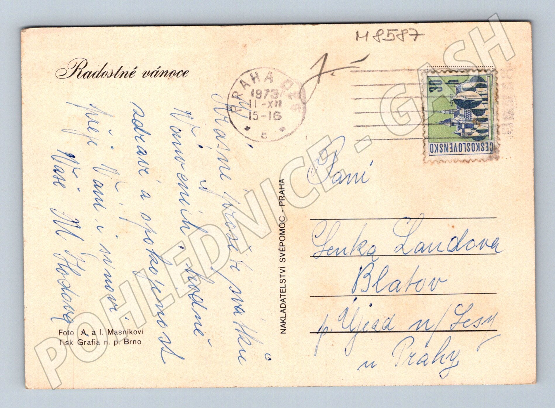 Vánoční pohlednice ČSSR 1976 – malý formát, použitá, krásný retro motiv