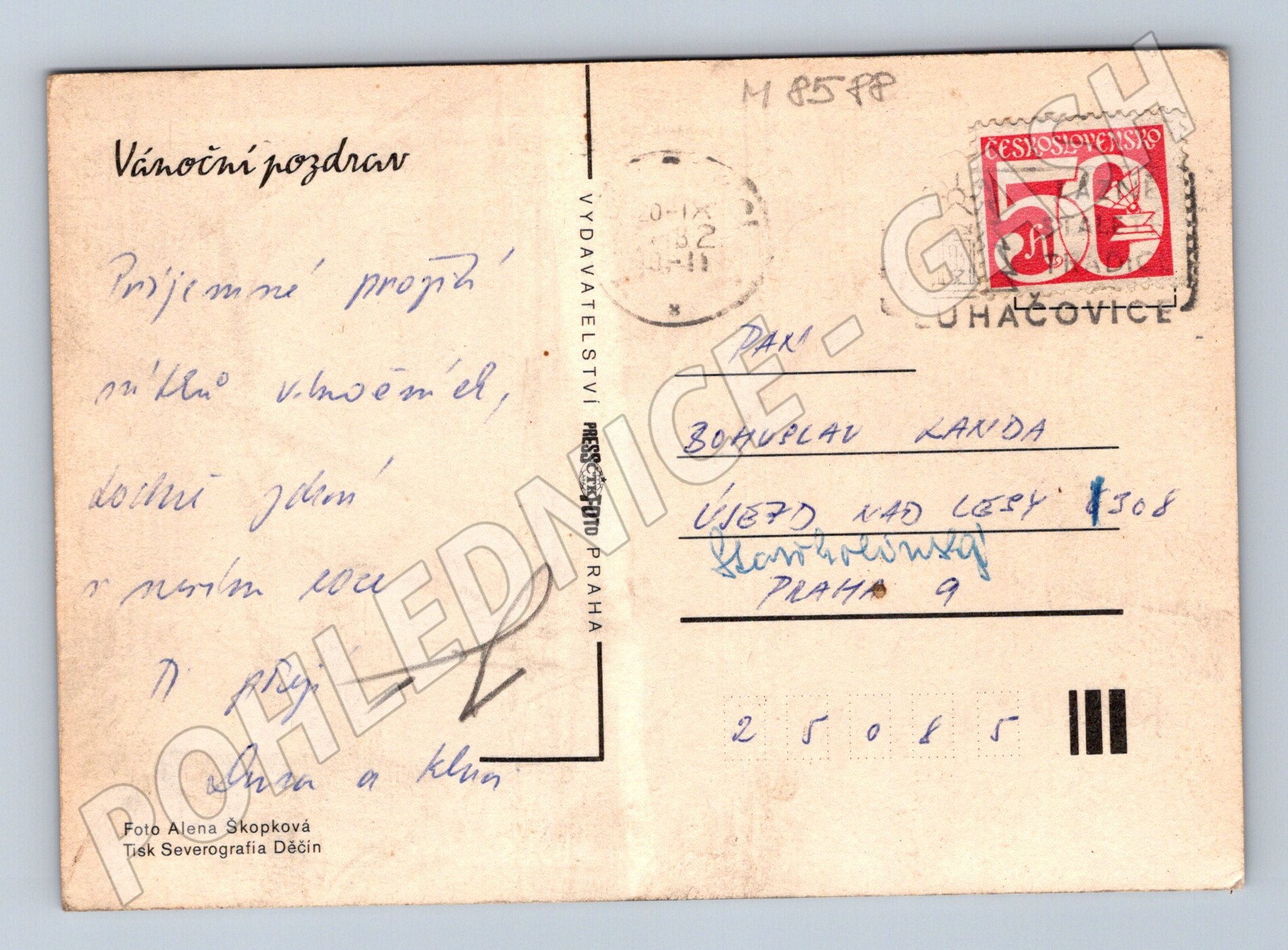 Vánoční pohlednice Československo – sváteční zátiší, prošlá pošta