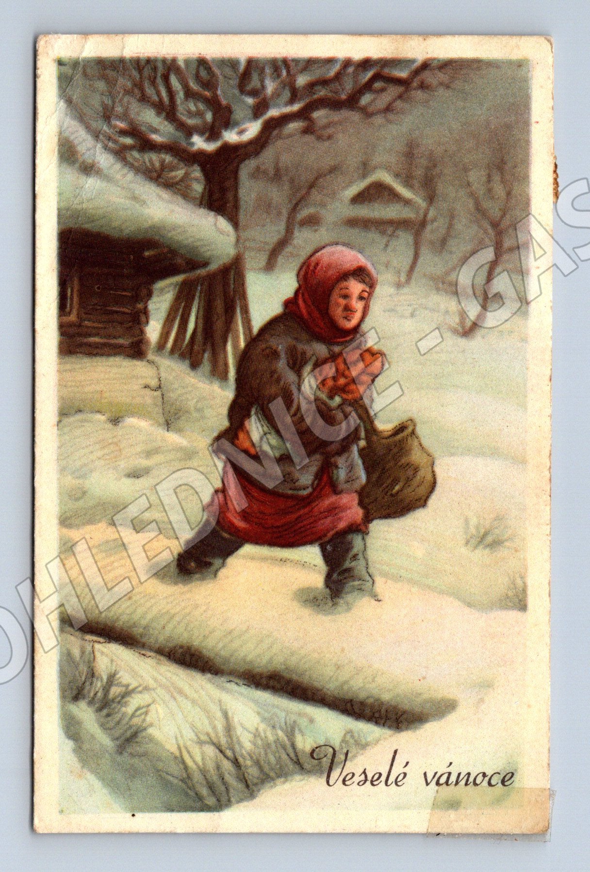 Nabízím starou pohlednici s vánočním motivem, která byla zaslána v roce 1948. Na přední straně je krásná ilustrace zimní krajiny s dítětem nesoucím dárky a přáním Veselé vánoce . Zadní strana obsahuje ručně psané přání a známku z období Československa s rokem 1948. Pohlednice je v dobrém sběratelském stavu, nese drobné známky stáří a použití. Jedná se o malý formát do roku 1950 a zajímavý kousek české historie i sběratelství.