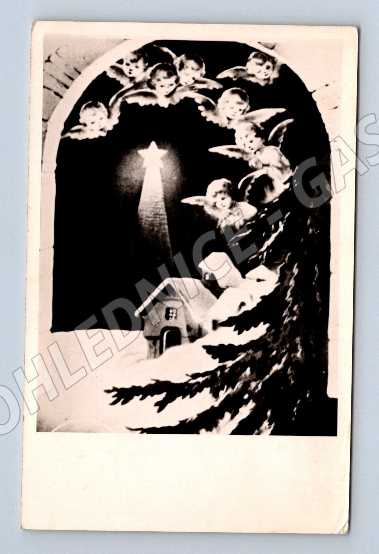 Nabízím originální starou pohlednici s vánočním motivem. Na přední straně je vyobrazena scéna betléma s andílky a kometou, velmi pravděpodobně z českého prostředí, černobílá fotografie. Zadní strana je popsána a opatřena poštovní známkou z období Československa (30h, motiv hrad Pernštejn). Pohlednice je adresována do Prahy na Malou Stranu. Jedná se o malý formát pohlednice z období do roku 1950, vhodnou pro sběratele historických pohlednic či jako krásný vánoční suvenýr. Stav viz foto: v rozích drobné známky stáří a ušpinění.