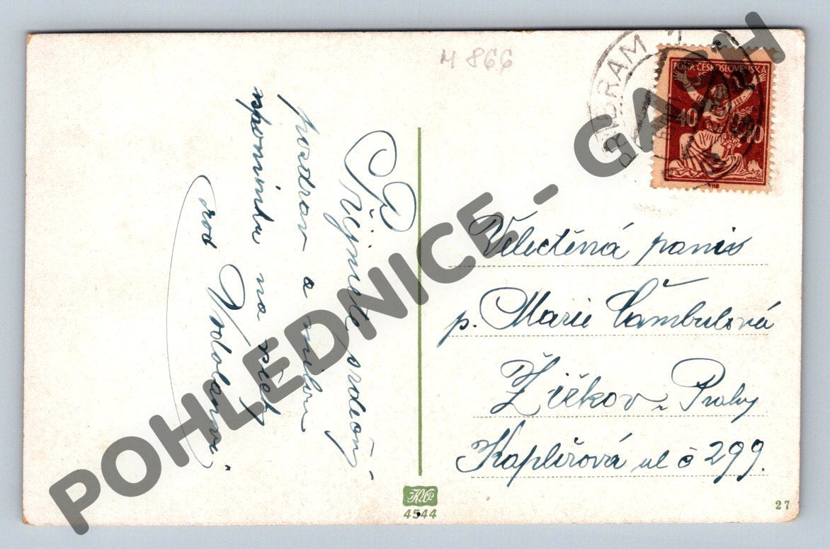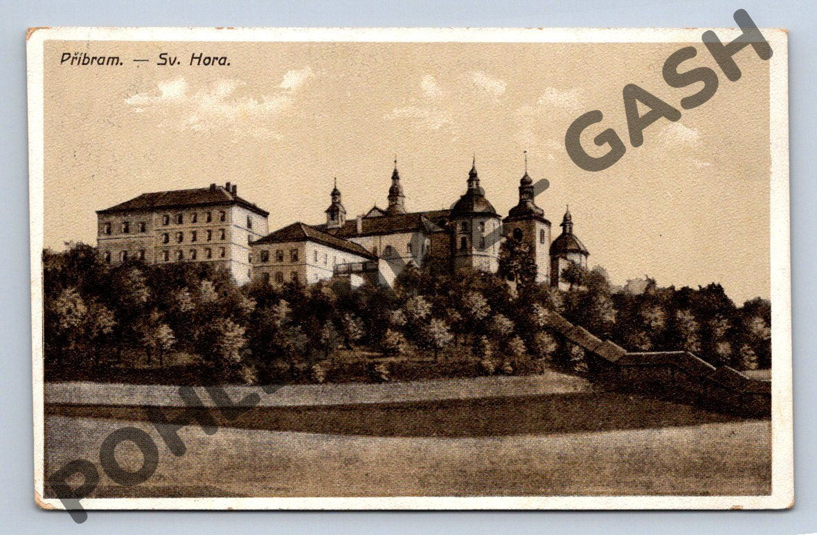 Originální stará pohlednice s motivem poutního místa Svatá Hora v Příbrami. Jedná se o černobílou fotografii zachycující známý barokní areál, který je významným českým poutním místem. Pohlednice byla odeslána, opatřena známkou a poštovním razítkem Příbram. Zachovalý stav, na rubu ručně psaný text. Skvělý sběratelský kousek pro milovníky historie, architektury a českých památek.
