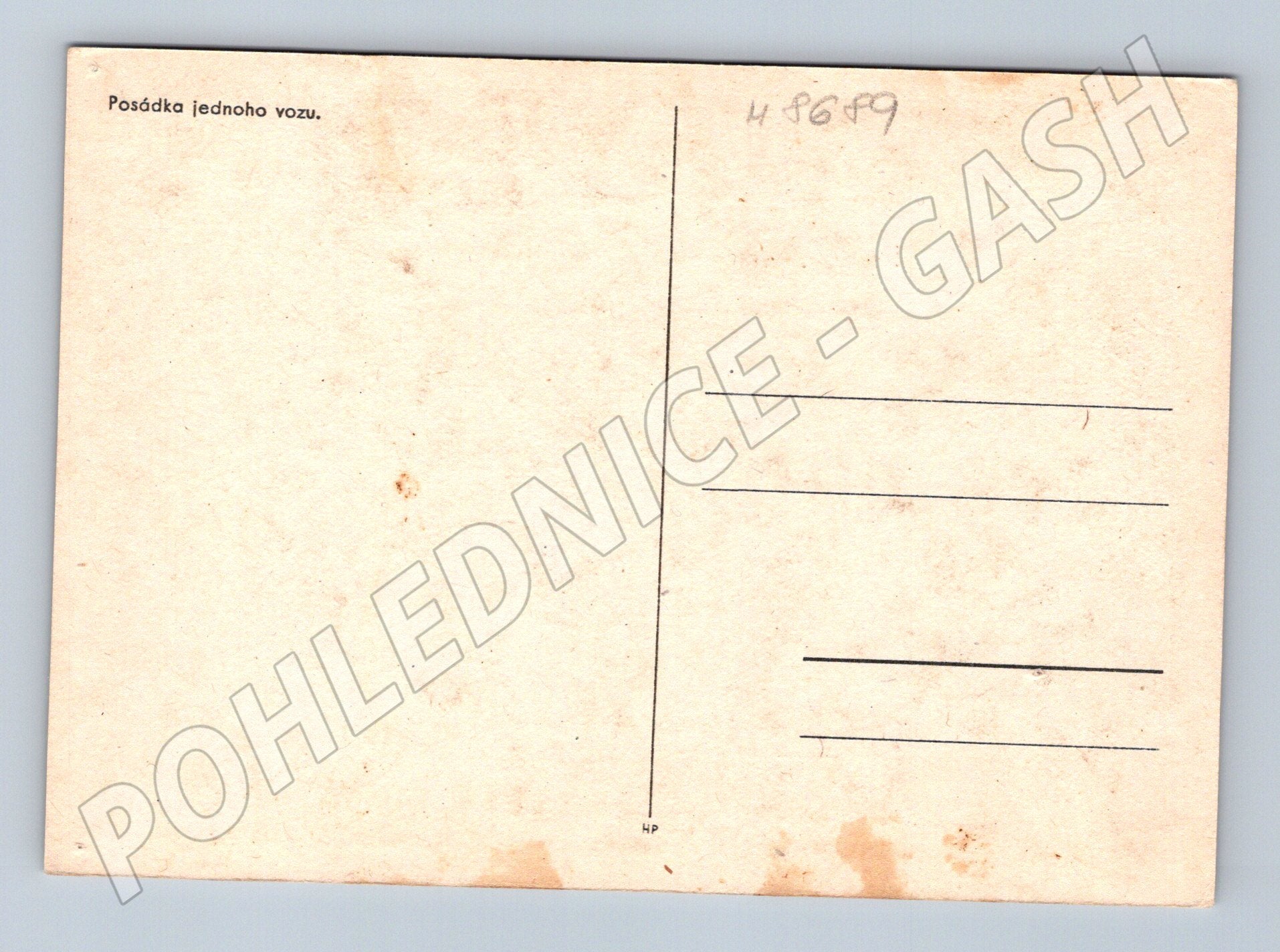Originální historická pohlednice s dobovým snímkem posádky vozu, pravděpodobně z období první poloviny 20. století. Pohlednice nese na zadní straně popis Posádka jednoho vozu . Na přední straně je zachycena skupina osob, včetně žen v krojích, ve veteránském automobilu. Velmi pěkný stav, pouze lehké známky stáří a drobné zašpinění v oblasti rohů. Bez známky odeslání, čistá zadní strana s předtištěným místem pro adresu a text. Vhodné pro sběratele historických pohlednic, techniky i etnografie.