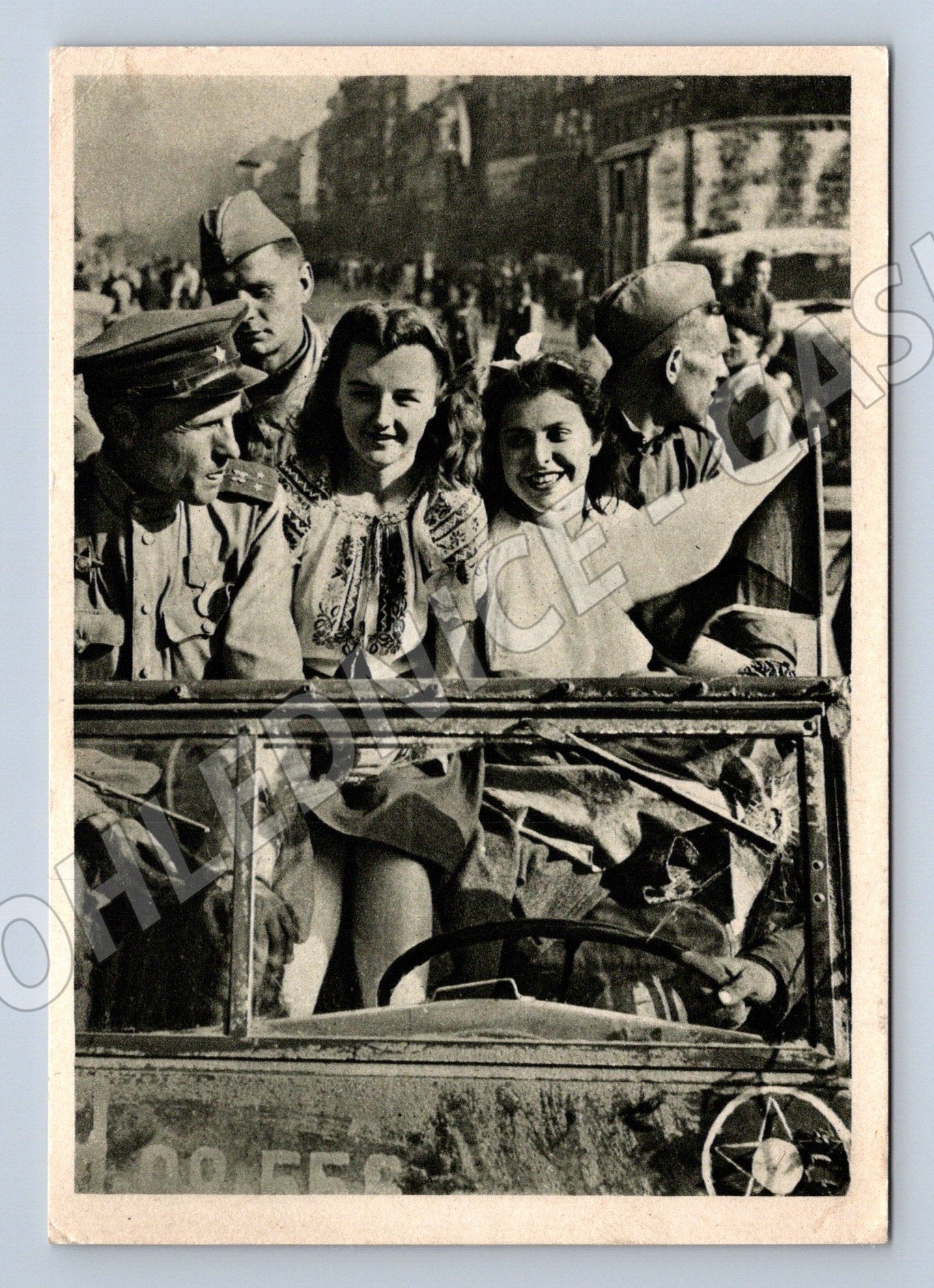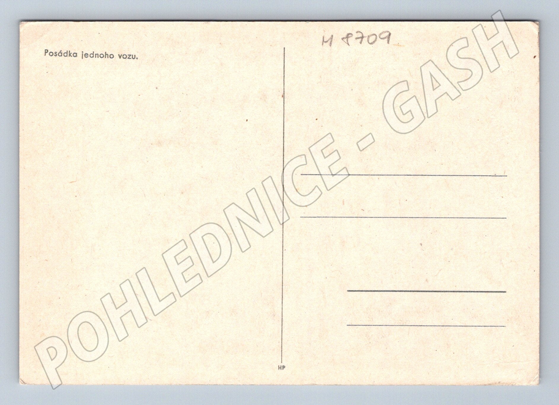 Černobílá pohlednice s názvem Posádka jednoho vozu zachycuje skupinu lidí v tradičních lidových krojích jedoucí ve voze. Ve voze sedí muži i ženy, ženy mají slavnostní vyšívané kroje, které odkazují na tradiční folklór a regionální zvyky. Snímek působí slavnostně, je jemně patinovaný dobou a krásně ilustruje atmosféru minulého století. Jedná se o klasickou pohlednici bez známky poštovního odeslání, vhodnou do sbírky etnografických nebo historických pohlednic.
