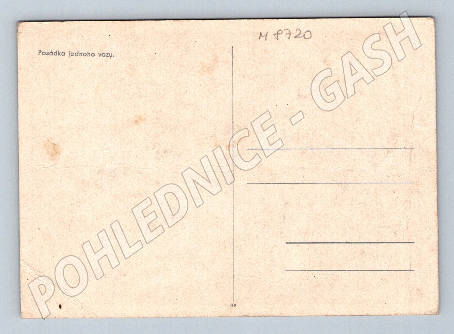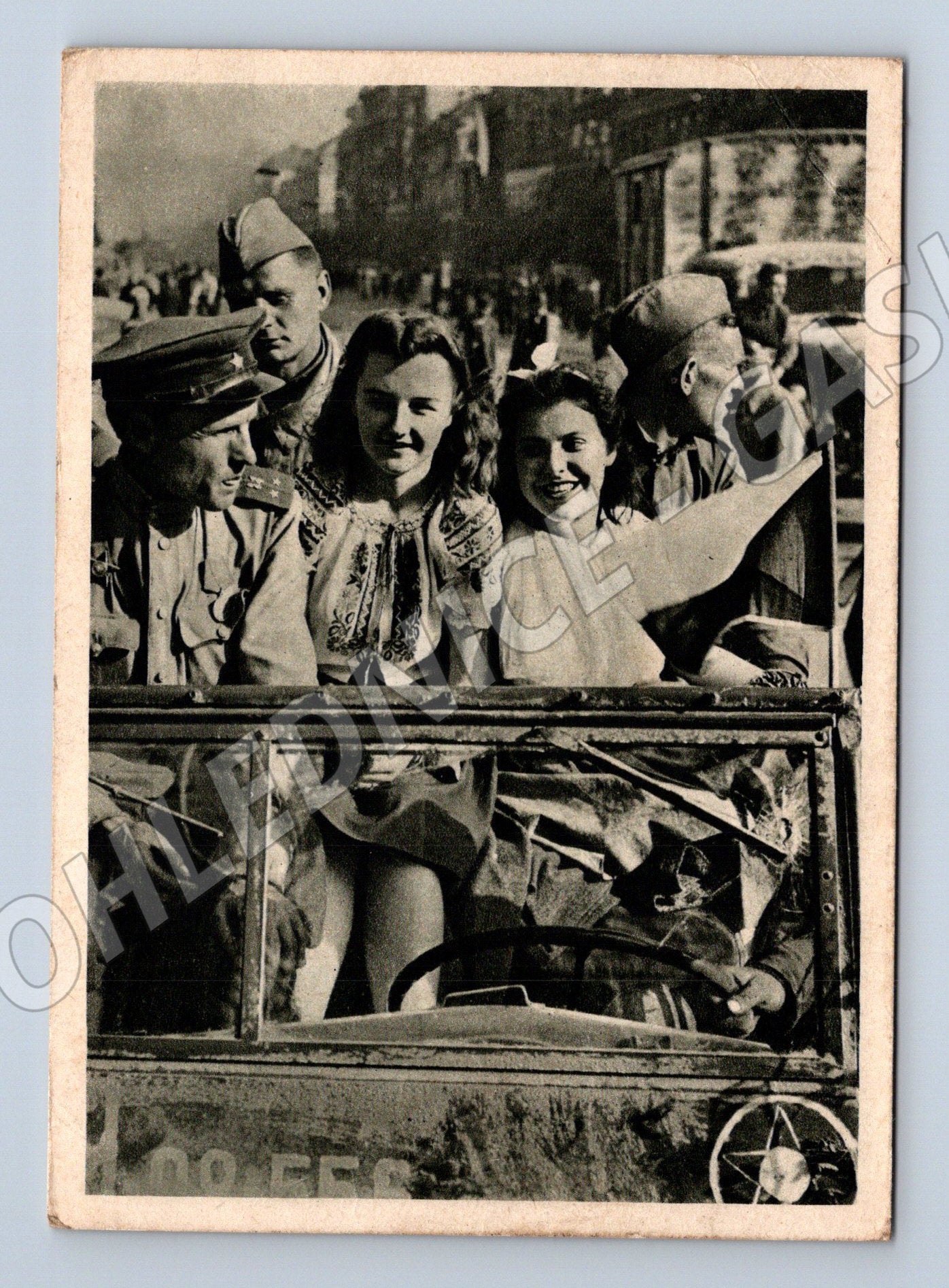 Nabízím starou pohlednici s názvem Posádka jednoho vozu . Pohlednice zachycuje skupinu osob v automobilu, zřejmě z meziválečného či poválečného období. Dvě ženy v krojích a několik mužů v uniformách sedí ve starším voze, atmosféra je slavnostní nebo společenská. Stav odpovídá stáří – lehce zažloutlý papír, mírné opotřebení, rohy mohou být mírně ohnuté (viz foto). Zadní strana je nepopsaná, pouze s předtištěným popisem a linkami na adresu. Vhodné pro sběratele historických pohlednic se zaměřením na dopravu, techniku nebo dobu první poloviny 20. století.