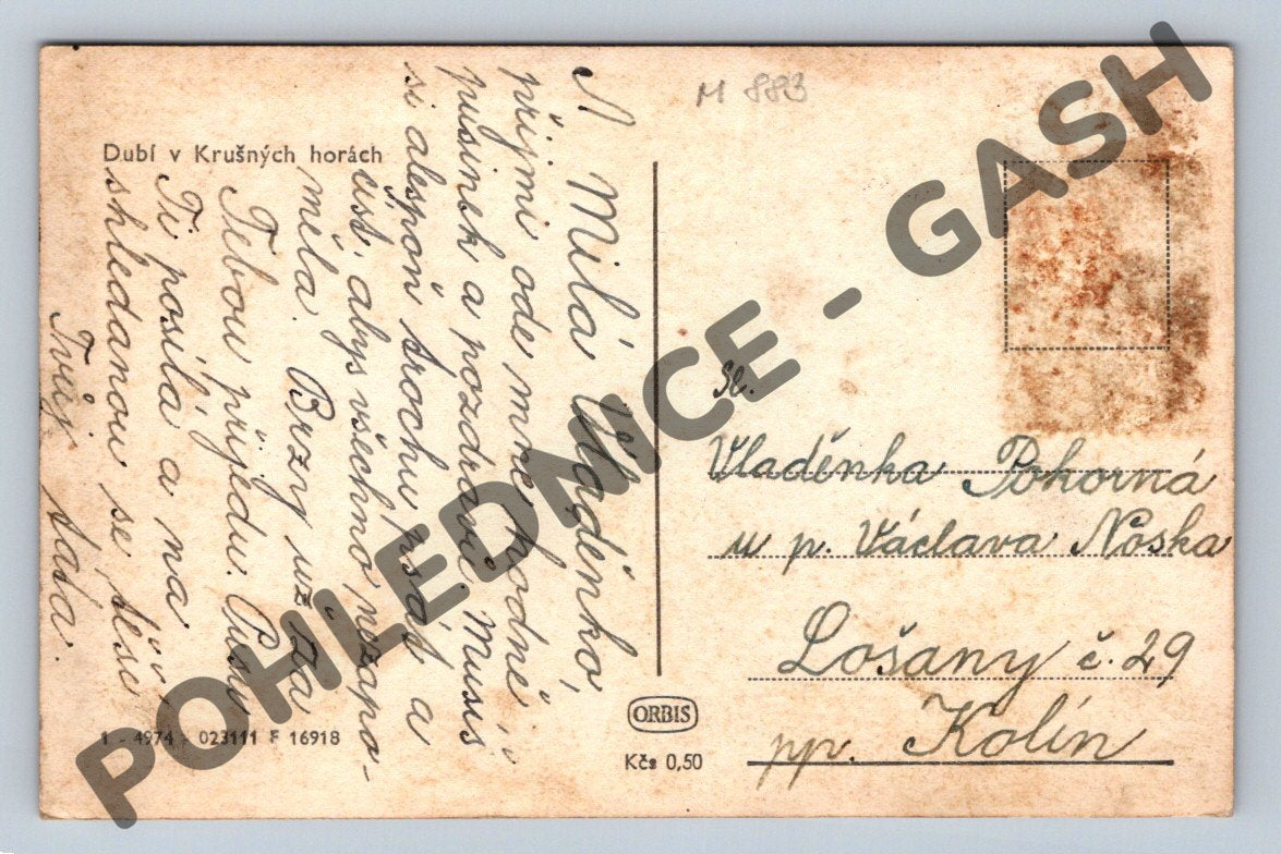 Originální historická pohlednice s vyobrazením Dubí v Krušných horách. Na pohlednici je výrazný kostel a zvonice zasazené v krásném lesnatém prostředí tohoto známého lázeňského města. Na zadní straně je ručně psané věnování, typické pro období první poloviny 20. století. Pohlednice nese známky stáří a opotřebení, ale zůstává výraznou a cennou sběratelskou položkou pro milovníky architektury, památek a historie českých lázeňských měst. Stav patrný z fotografií, bez známky, originální dobové provedení.