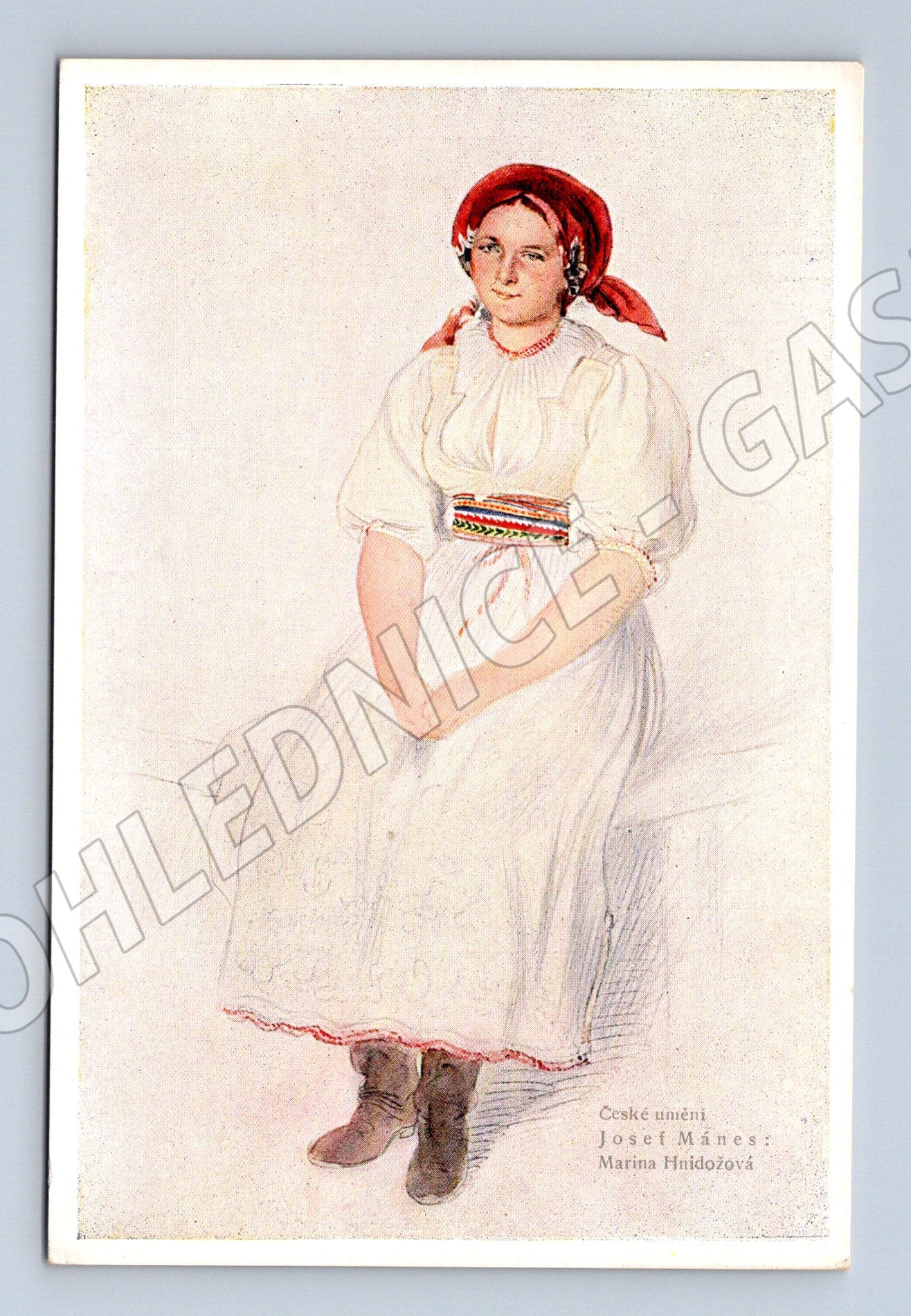 Pohlednice Josef Mánes – Maminka Hrušková, etnografie, kroj