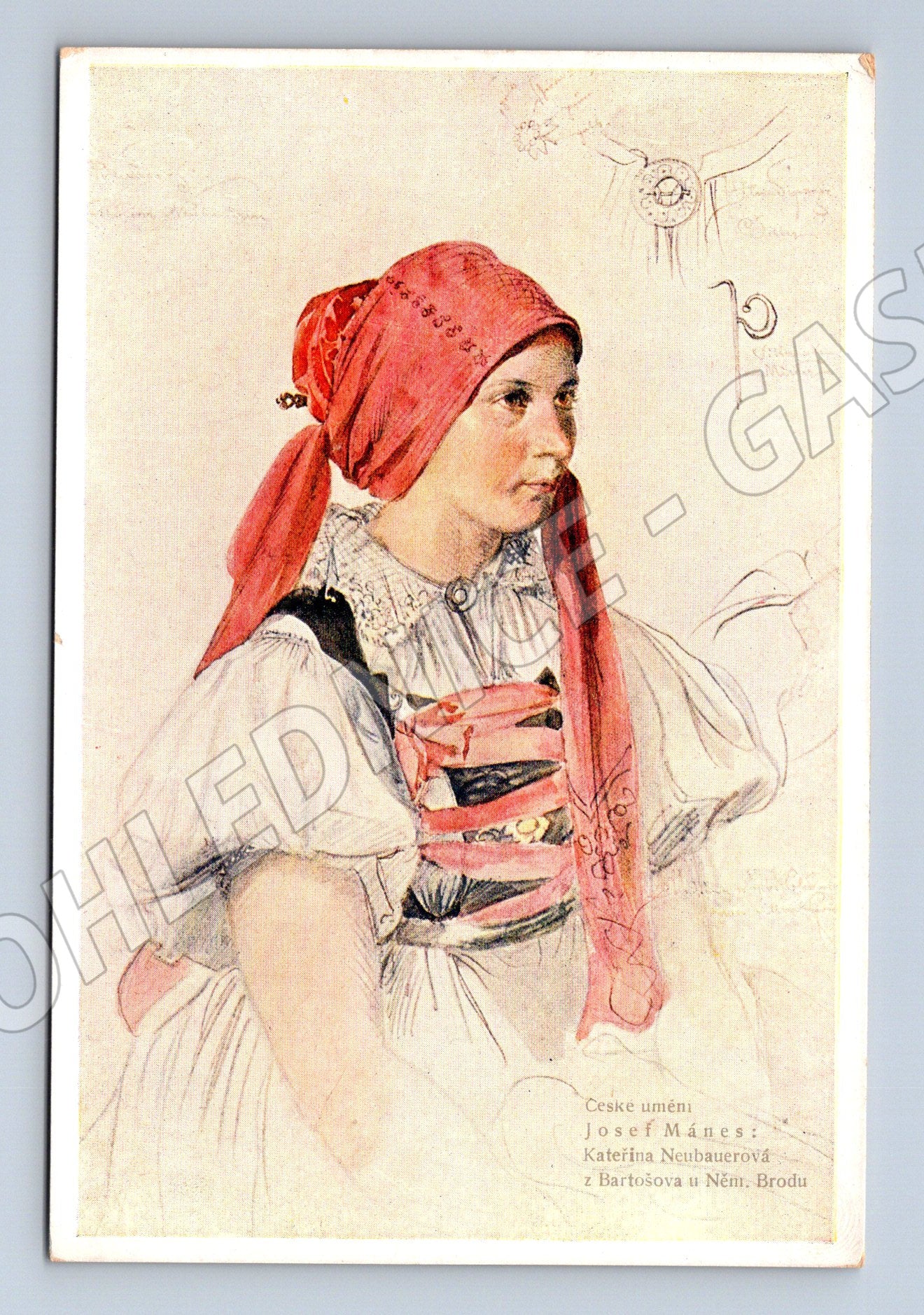 Pohlednice Josef Mánes – Katinka v kroji, etnografie