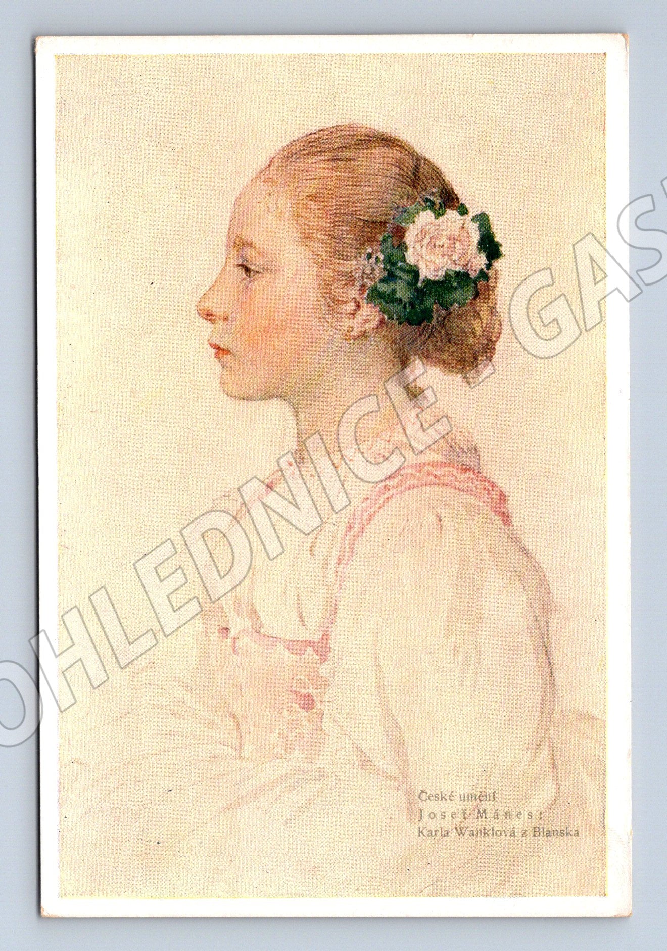 Pohlednice Josef Mánes – Karla Vanková z Budišic, portrét dívky