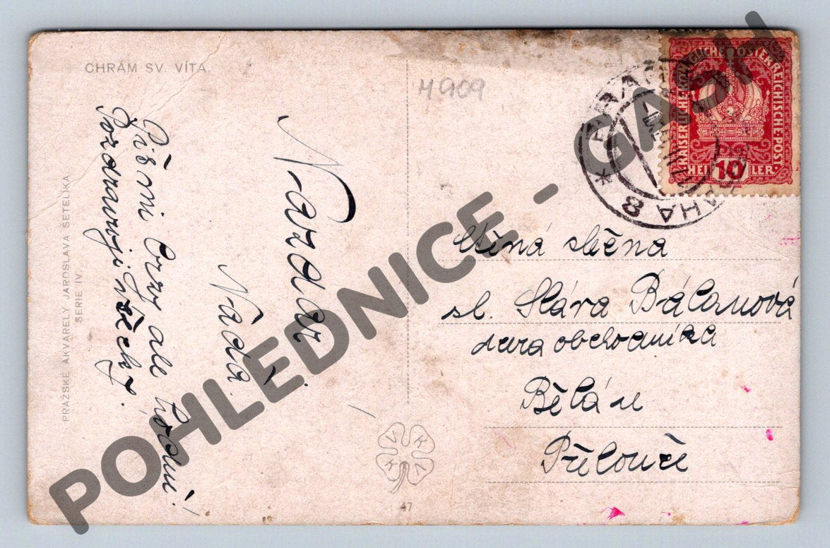 Stará pohlednice – Chrám sv. Víta, Praha, prošlá poštou