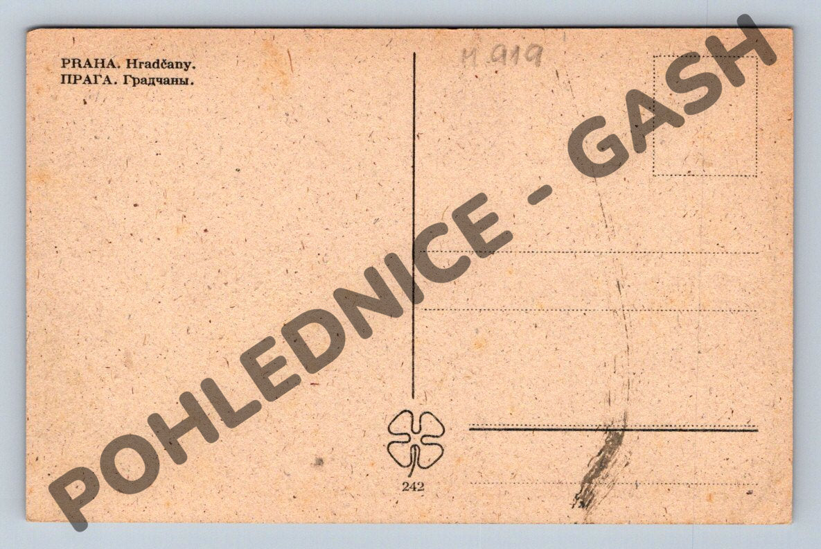 Originální stará pohlednice s motivem Prahy, konkrétně Hradčan a Pražského hradu. Pohlednice je v černobílém provedení a zachycuje malebný výhled na historickou část města s dominantou katedrály sv. Víta. Na zadní straně najdete označení PRAHA. Hradčany ve třech jazycích (česky, rusky a ukrajinsky). Pohlednice nevykazuje zjevné známky poštovního použití, je čistá a v pěkném sběratelském stavu. Vhodné pro sběratele historických pohlednic z Čech, milovníky Prahy a zájemce o památky.