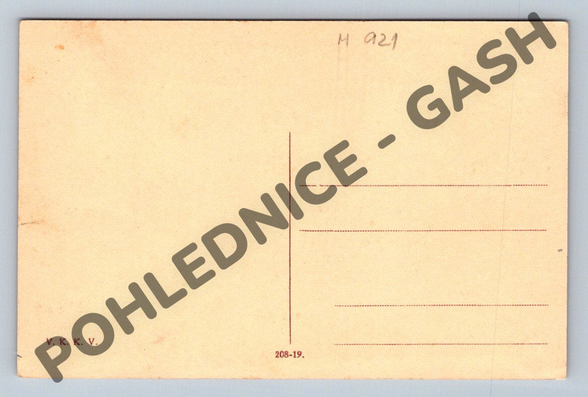 Originální historická pohlednice s motivem Pražského hradu a Karlova mostu v Praze, označená nápisem PRAHA. - Hradčany a Karlův most. Pohlednice zachycuje ikonické panorama s dominantou katedrály sv. Víta. Na zadní straně jsou předtištěné linky pro adresu a místo pro známku, pohlednice je nepopsaná. Stav pohlednice odpovídá stáří, bez výrazných poškození, pouze lehké známky opotřebení, viz foto. Vydavatel V.K.K.V., číslo 208-19. Velmi pěkný a sběratelsky žádaný kousek z první poloviny 20. století.