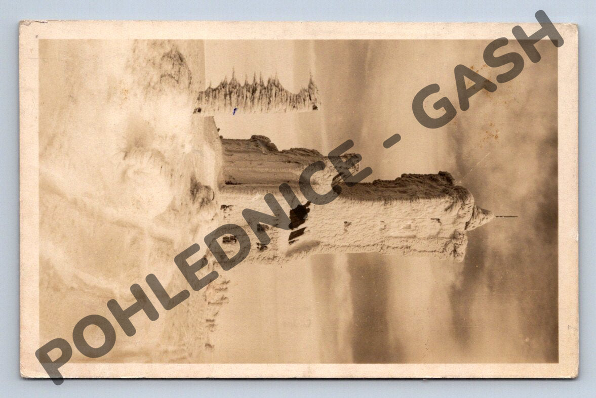 Prodám starou pohlednici s motivem zasněžené rozhledny na Pradědu v Jeseníkách. Na přední straně je krásná černobílá fotografie samotné rozhledny, která je celá pokryta sněhem a námrazou, atmosféra zimních hor je velmi působivá. Na zadní straně pohlednice je tištěný nápis Jeseníky - Praděd - Rozhledna , ručně psaný vzkaz a adresace, viditelné jsou také otisky razítek poštovního provozu z roku 1941. Pohlednice je v odpovídajícím stavu vzhledem ke svému stáří, vhodná do sbírky nebo jako originální památka na Jeseníky a Praděd. Rozměr tradiční pohlednice, pěkný sběratelský kousek s historickou hodnotou.