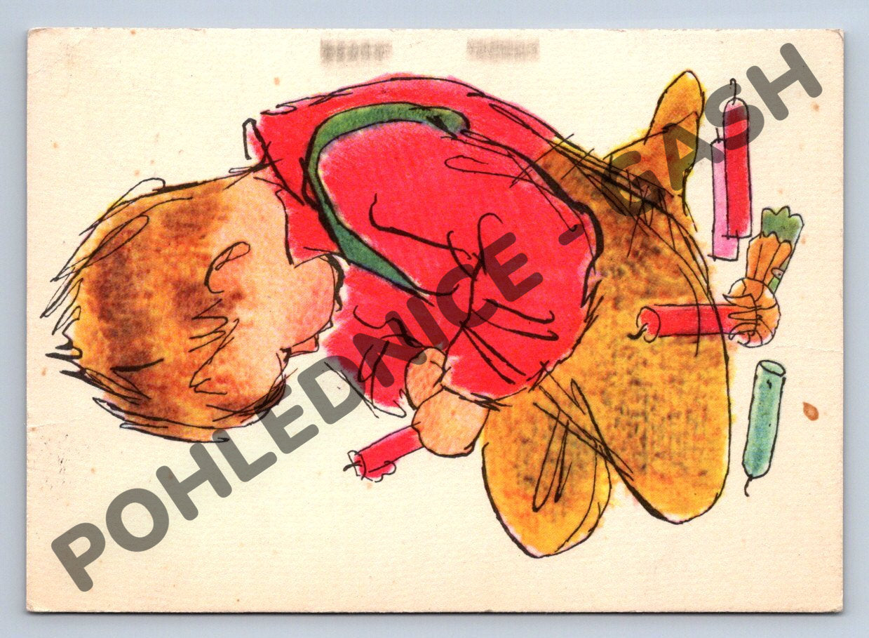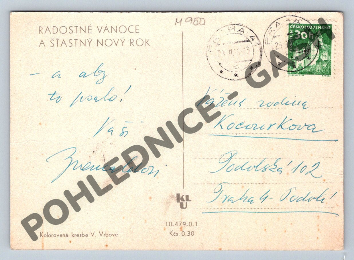 Vánoční pohlednice ČSR - dětský motiv, kresba V. Vrbová, známka