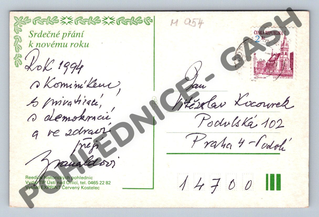 Pohlednice Novoroční kominík 1994 – ilustrovaná, zaslaná, ČR