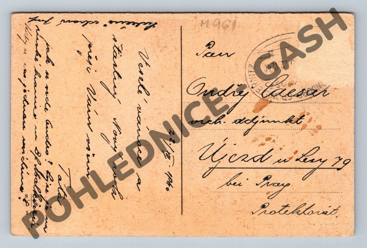 Nabízím starou pohlednici s vánoční tematikou z období Protektorátu Čechy a Morava (rok 1940). Pohlednice zobrazuje tradiční vánoční motiv – svícen s hořícími svíčkami, větvičkou jehličnanu a květinovou dekorací. Na pohlednici je německý nápis „Frohe Weihnachten“. Adresní i textová strana je vyplněna ručně psaným vzkazem, včetně adresy adresáta v Újezdě u Brna. Pohlednice je opatřena poštovním razítkem a známkami používání odpovídajícími stáří. Skvělý kousek pro sběratele historických pohlednic, vánočních motivů nebo protektorátní filatelie.