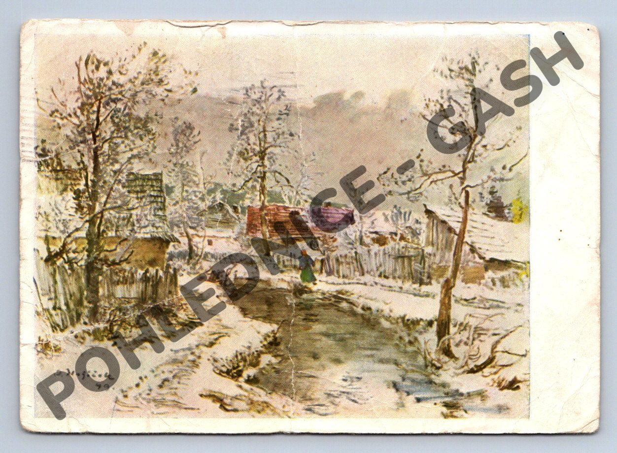 Nabízím originální starou pohlednici s motivem zimní krajiny a vesnických stavení, autorem je O. Blažíček (nazváno Jinovatka). Pohlednice byla odeslána v roce 1952 z Ústí nad Labem a je krásným příkladem české korespondence z období první poloviny 20. století. Na přední straně se nachází jemná umělecká malba s motivem sněhem pokryté krajiny, na zadní ručně psaný vzkaz a poštovní razítko. Jedná se o sběratelsky zajímavý kousek s autentickou patinou a známkami stáří (polámané okraje, drobné skvrny apod.). Pohlednice je vhodná pro sběratele, milovníky historie či dobové korespondence, ale také jako dárek pro nadšence do české krajinomalby.