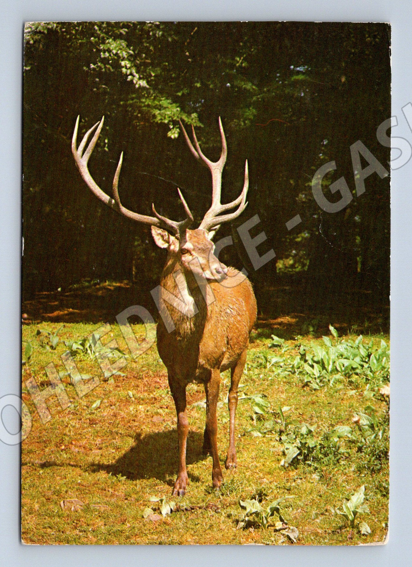 Originální pohlednice s motivem jelena evropského. Fotografie pochází od známého fotografa Eduarda Studničky a tisk byl proveden ve VČT 01, Pardubice. Pohlednice byla vydána v bývalém Československu nakladatelstvím Svépomoc Praha, v roce 1977. Na zadní straně pohlednice je uveden název zvířete orazítkováný výrobcem – Jelen evropský. Tato pohlednice zachycuje majestátního jelena v lesním prostředí a představuje pěkný sběratelský kousek pro milovníky přírody či filokartisty. Stav viz foto.