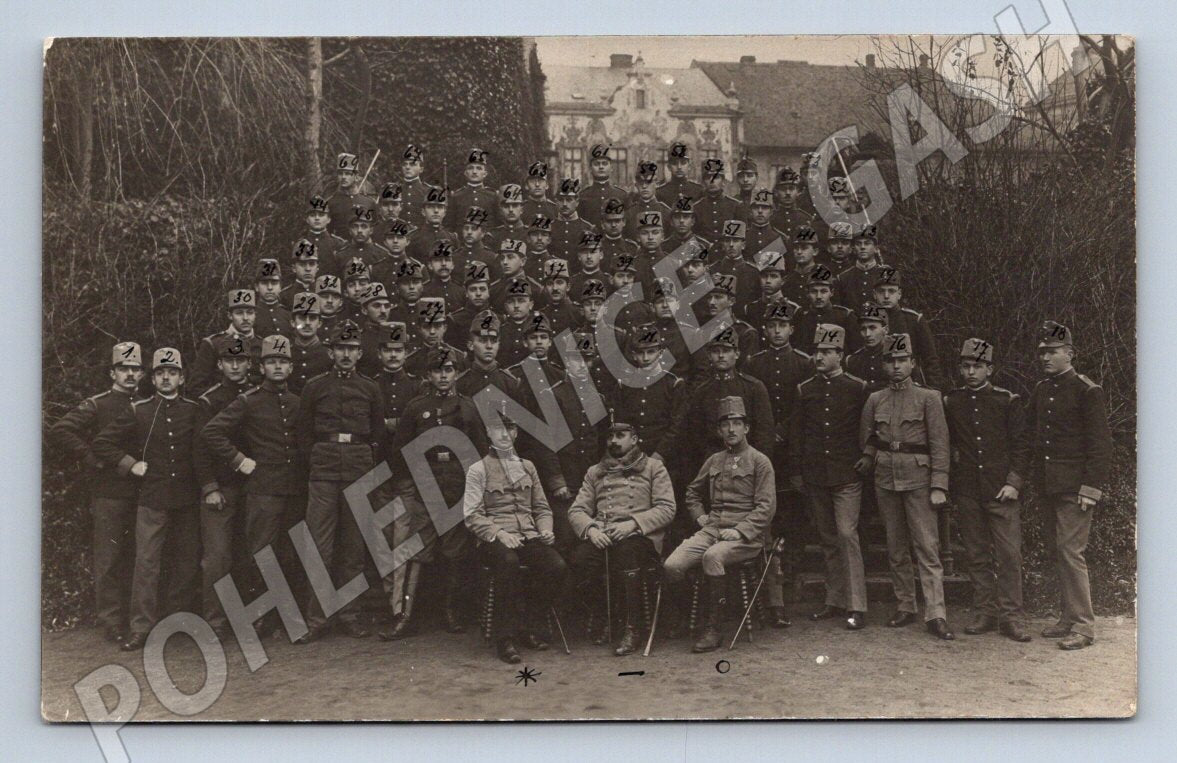 Historická pohlednice - skupina vojáků Rakousko-Uhersko, číslovaní