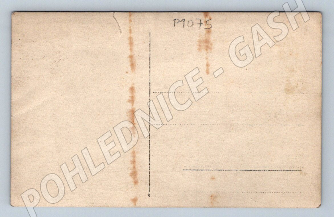 Starší černobílá pohlednice s portrétem uniformovaného muže, pravděpodobně vojenský důstojník z první poloviny 20. století. Pohlednice nese známky stáří, jsou na ní viditelné praskliny a mírné poškození rohů. Zadní strana pohlednice je nepsaná, s předtištěnými linkami a číslem P1075. Jedná se o sběratelský kus vhodný pro milovníky starých pohlednic a vojenské historie.