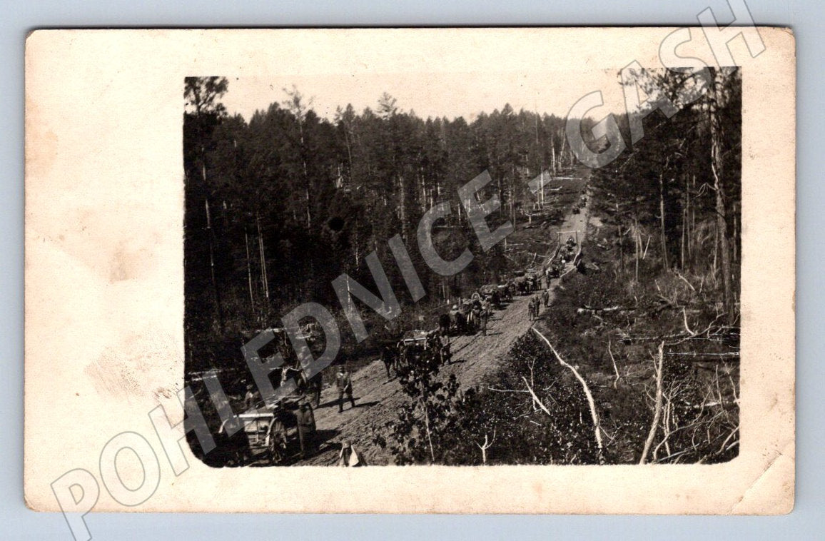 Pohlednice konvoj vojáků magistrále u Tajšetu Sibiř legionáři (P1087)
