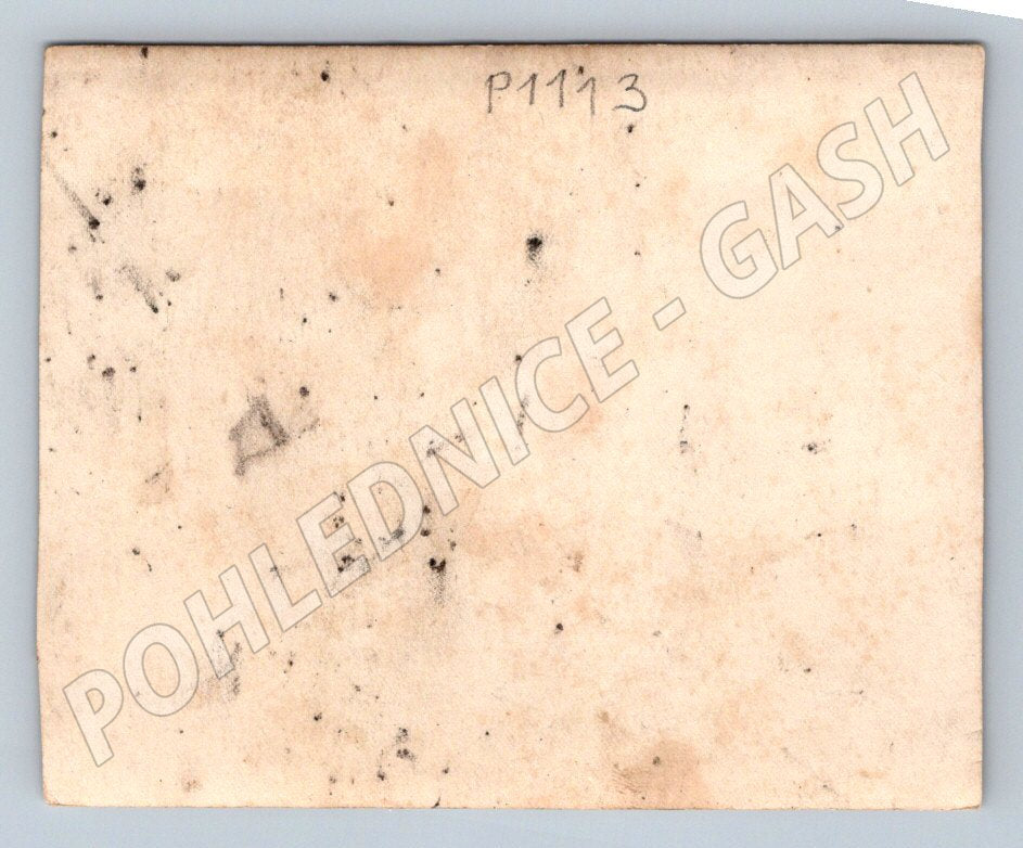 Starobylá černobílá pohlednice zobrazující rodinný portrét skupiny mužů, žen a dětí. Na obrázku jsou dva muži ve vojenských uniformách, kteří stojí v zadní řadě, a před nimi jsou elegantně oblečené ženy s dětmi. Fotografie vznikla pravděpodobně na začátku 20. století, což odpovídá jak způsobu oblékání, tak stylu fotografie. Zadní strana pohlednice je prázdná, pouze se značným patinováním a číselným označením. Pohlednice je sběratelsky cenná pro milovníky starých portrétů, rodinné historie a dobového odívání. Stav odpovídá stáří, na okrajích je patrné mírné opotřebení. Ideální přírůstek do sbírky historických fotografií osobností nebo rodin.