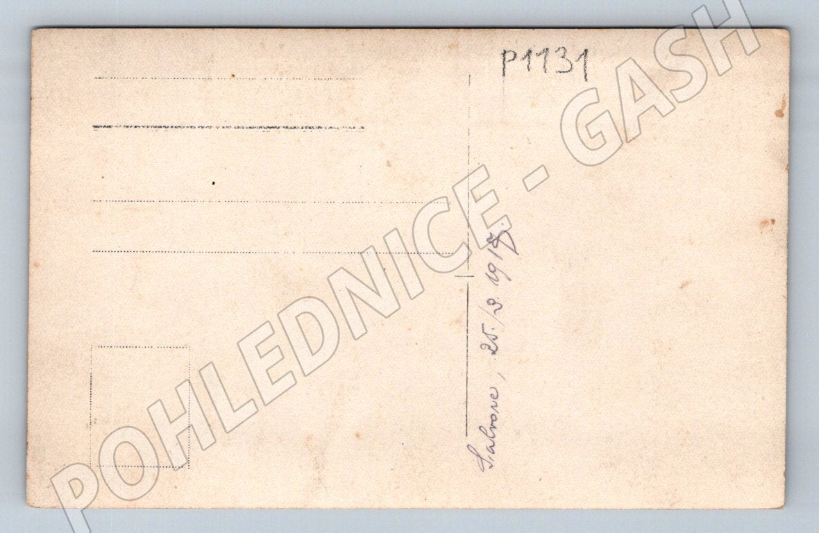 Starobylá pohlednice zobrazující zimní scénu se zapřaženými koňmi táhnoucími sáně s cestujícími. V pozadí jsou vidět tradiční venkovské domy, fotografie je v sepia tónování a zachycuje atmosféru venkova na přelomu 19. a 20. století. Pohlednice je ve slušném stavu s patinou a drobnými stopami stáří, na zadní straně je označení P1132. Ideální pro sběratele historických pohlednic se zaměřením na motivy koní a venkovského života.