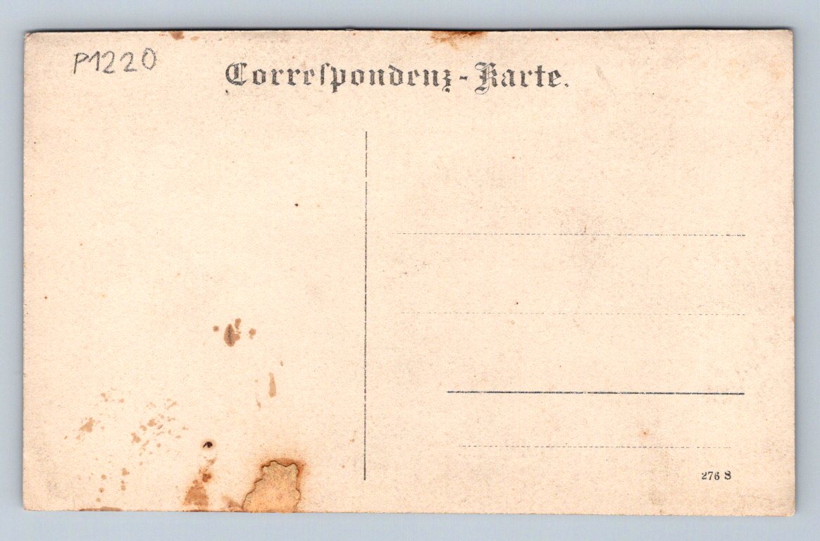 Starobylá černobílá pohlednice malého formátu z období do roku 1950. Na přední straně je zobrazen muž ve formálním oděvu stojící před budovou, v zahradním prostředí. Pozadí ukazuje typickou architekturu venkovského domu a stromy. Pohlednice má typické opotřebení svého stáří včetně lehkých skvrn a drobných známek manipulace. Zadní strana je označena nápisem Correspondenz-Karte, což naznačuje její původ v první polovině 20. století. Skvělý sběratelský kousek pro milovníky historických pohlednic z českého prostředí.