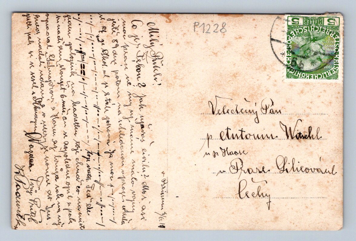 Originální historická pohlednice z roku 1911 zachycující skupinu mladých mužů v uniformách, patrně ze studentského či branného spolku Žižka 1911 . Na přední straně je ateliérová skupinová fotografie, někteří členové drží hudební nástroje (housle, harmonika), což dokresluje dobovou atmosféru. Zadní strana je popsána rukou, opatřená známkou a razítkem z Rakousko-Uherska. Pohlednice byla zaslána do Prahy, adresovaná panu učiteli. Celkový stav odpovídá stáří – mírně opotřebovaná a zašlá okraje, nepatrné ohyby. Unikátní sběratelský kousek pro milovníky historie a ikonografie českých spolků nebo uniformovaných sdružení z období počátku 20. století.