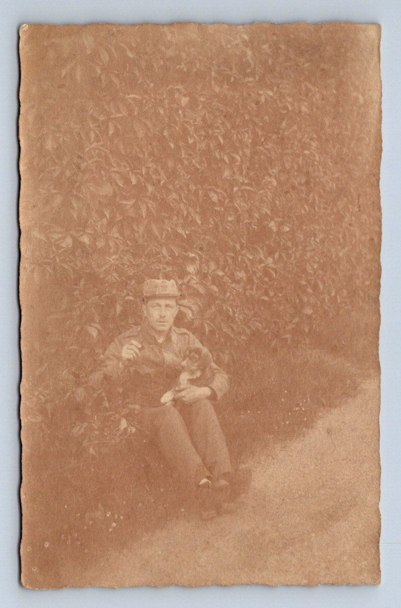 Starobylá pohlednice Levelező-Lap Maďarsko – voják se psem