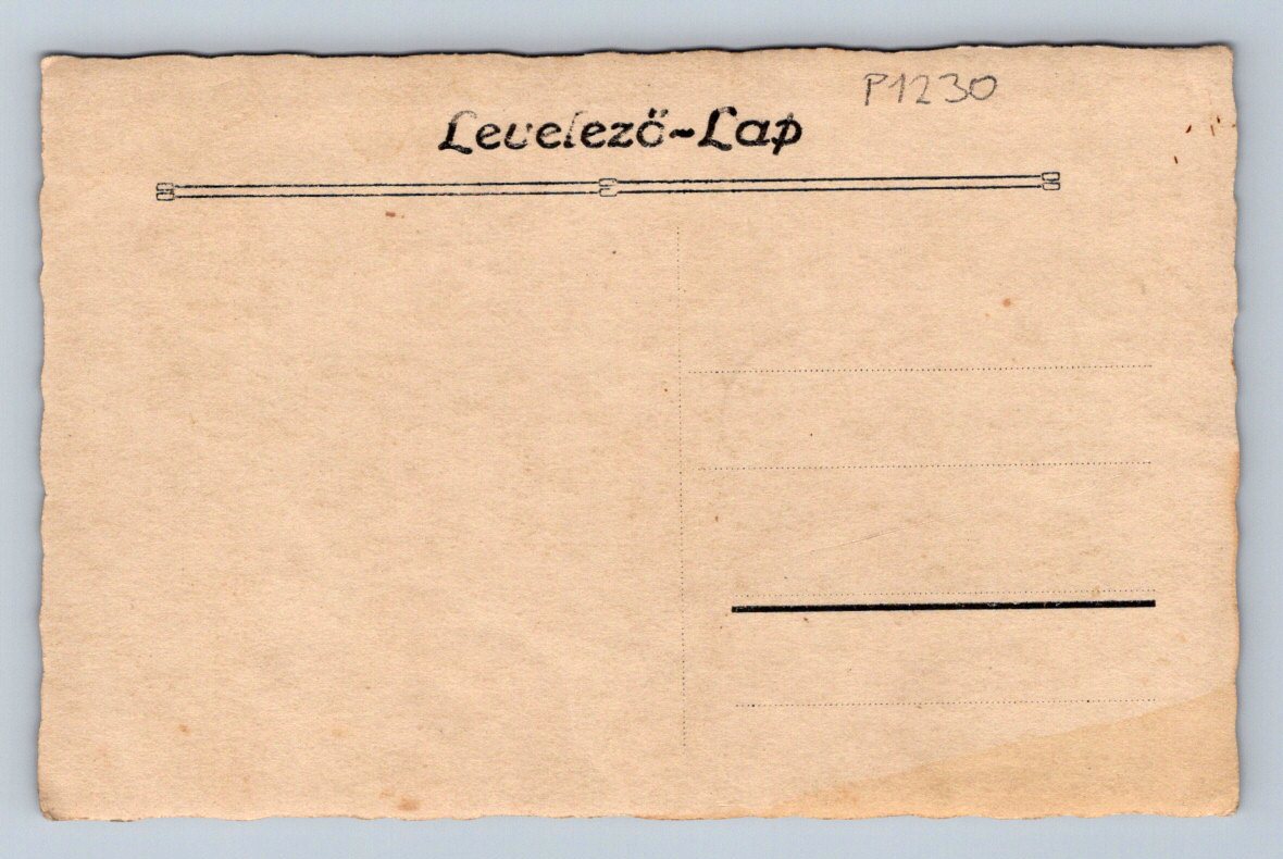 Starobylá pohlednice s fotografií muže odpočívajícího v přírodě, ležícího v trávě u keřů. Pohlednice je ve velmi dobrém stavu s drobnými známkami stáří na okrajích. Na zadní straně je označení Levelező-Lap, což znamená korespondenční lístek v maďarštině, a ručně napsané číslo P1230. Pohlednice není popsána ani orazítkována. Formát klasického malého rozměru, patrně z období první poloviny 20. století. Sbírkově zajímavý kousek s autentickou dobovou atmosférou.