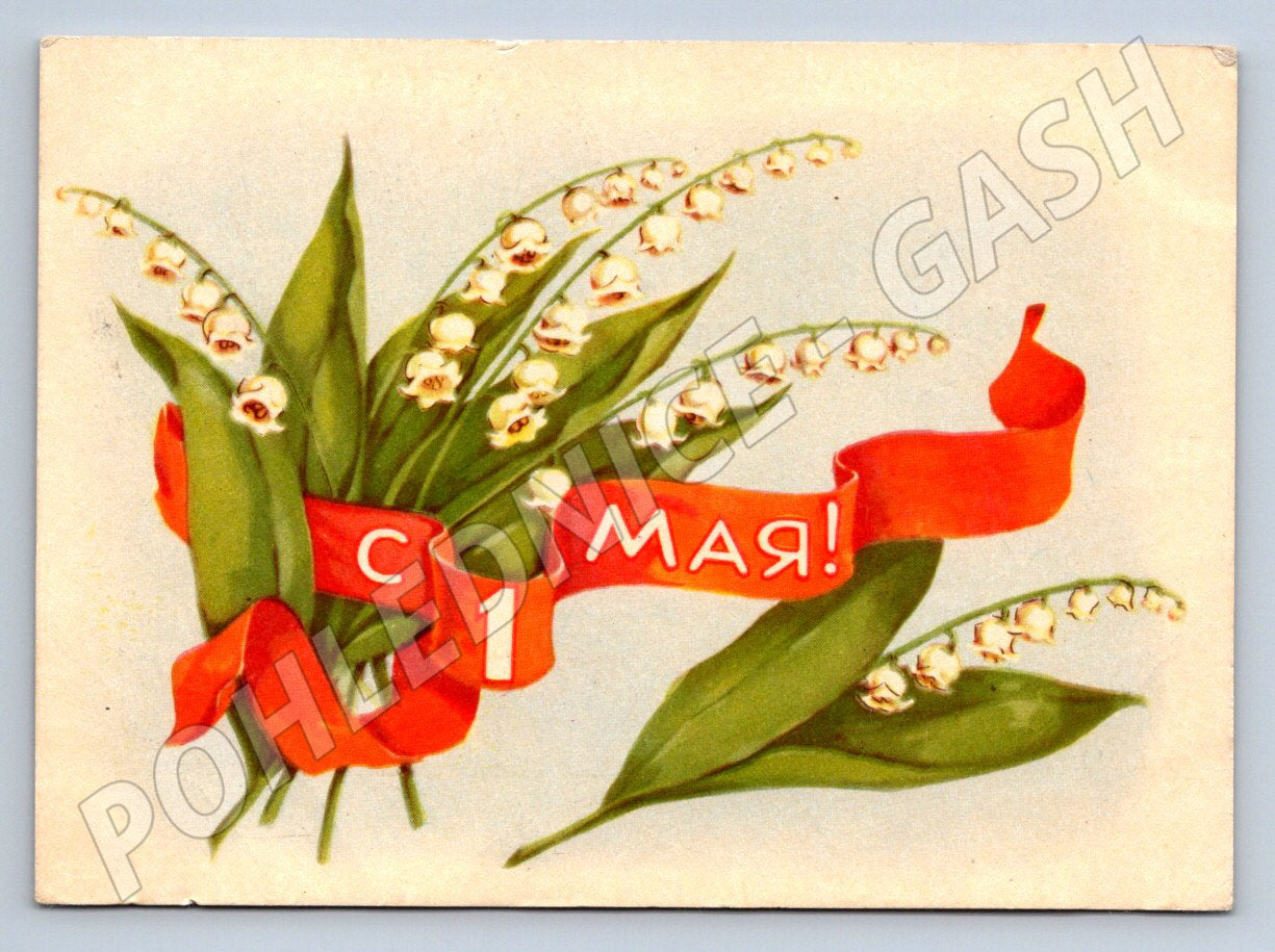 Originální pohlednice z období Sovětského svazu (SSSR) s motivem oslav 1. máje (Svátek práce). Na přední straně je vyobrazen svazek konvalinek s červenou stuhou a nápisem 1 МАЯ! (1. máj). Pohlednice byla skutečně odeslaná – na zadní straně se nachází rukou psaný vzkaz v ruštině, razítka pošty a dobová známka s motivem sovětského pilota. Vzácný sběratelský kousek, který skvěle dokresluje atmosféru tehdejší doby. Vhodná do sbírky pohlednic z SSSR, k historickému studiu nebo jako retro dekorace. Stav odpovídá stáří, viz foto.