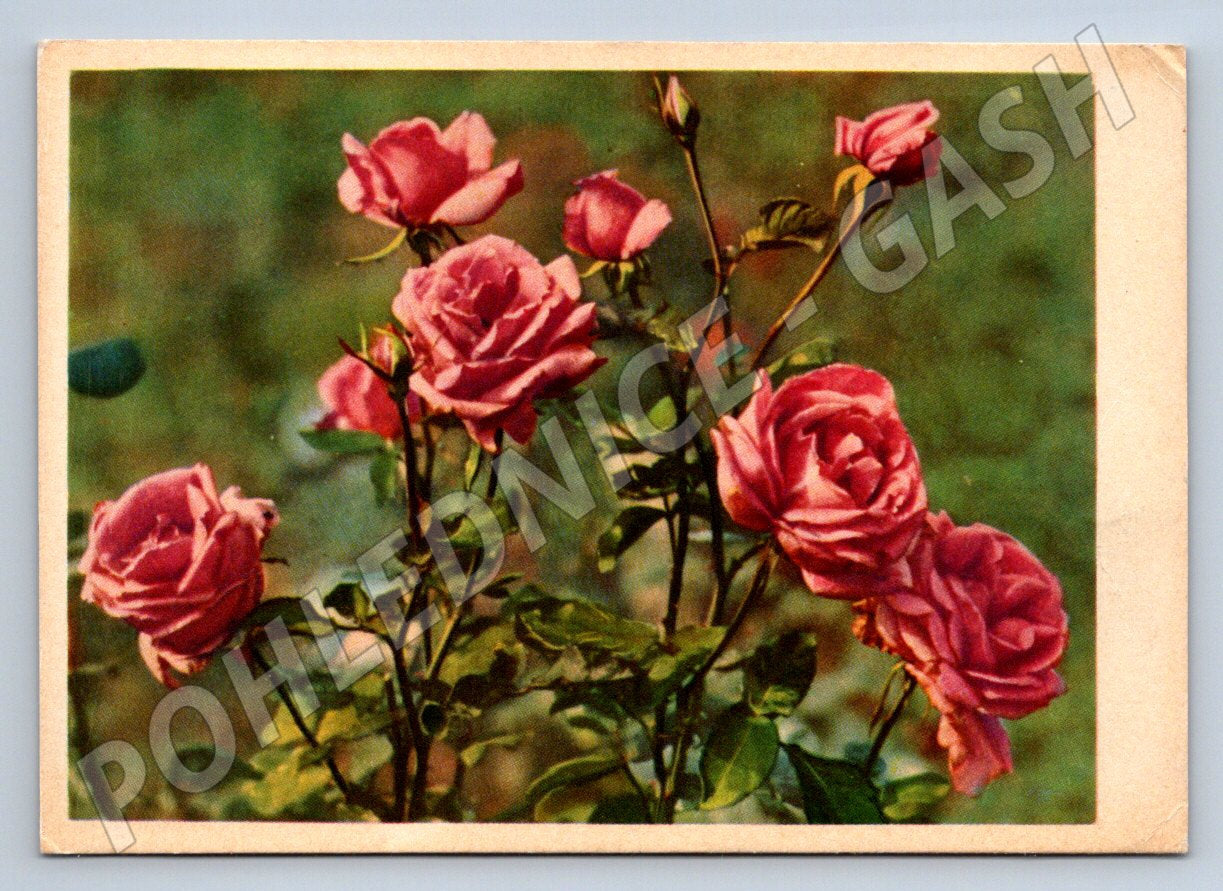 Pohlednice SSSR růže – květinový motiv, 60. léta