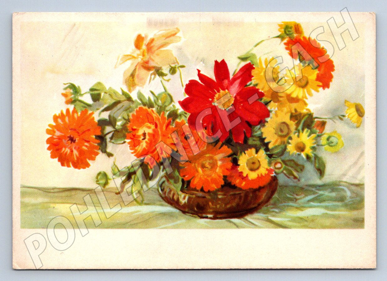 Pohlednice zátiší s květinami – SSSR, malířství, použité
