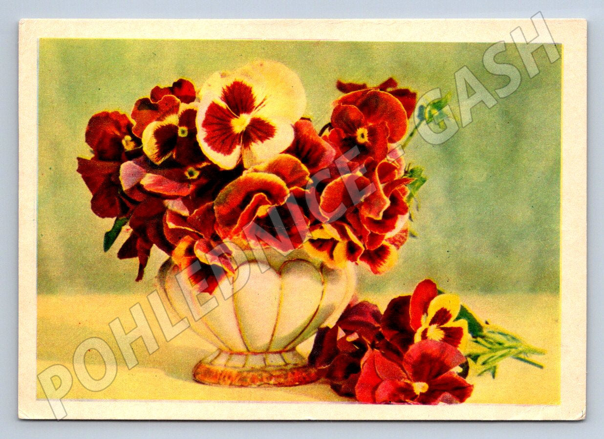 Pohlednice SSSR macešky ve váze ruční věnování (P1338)
