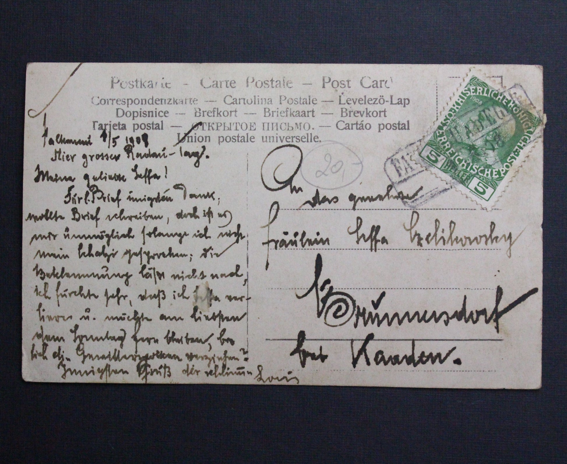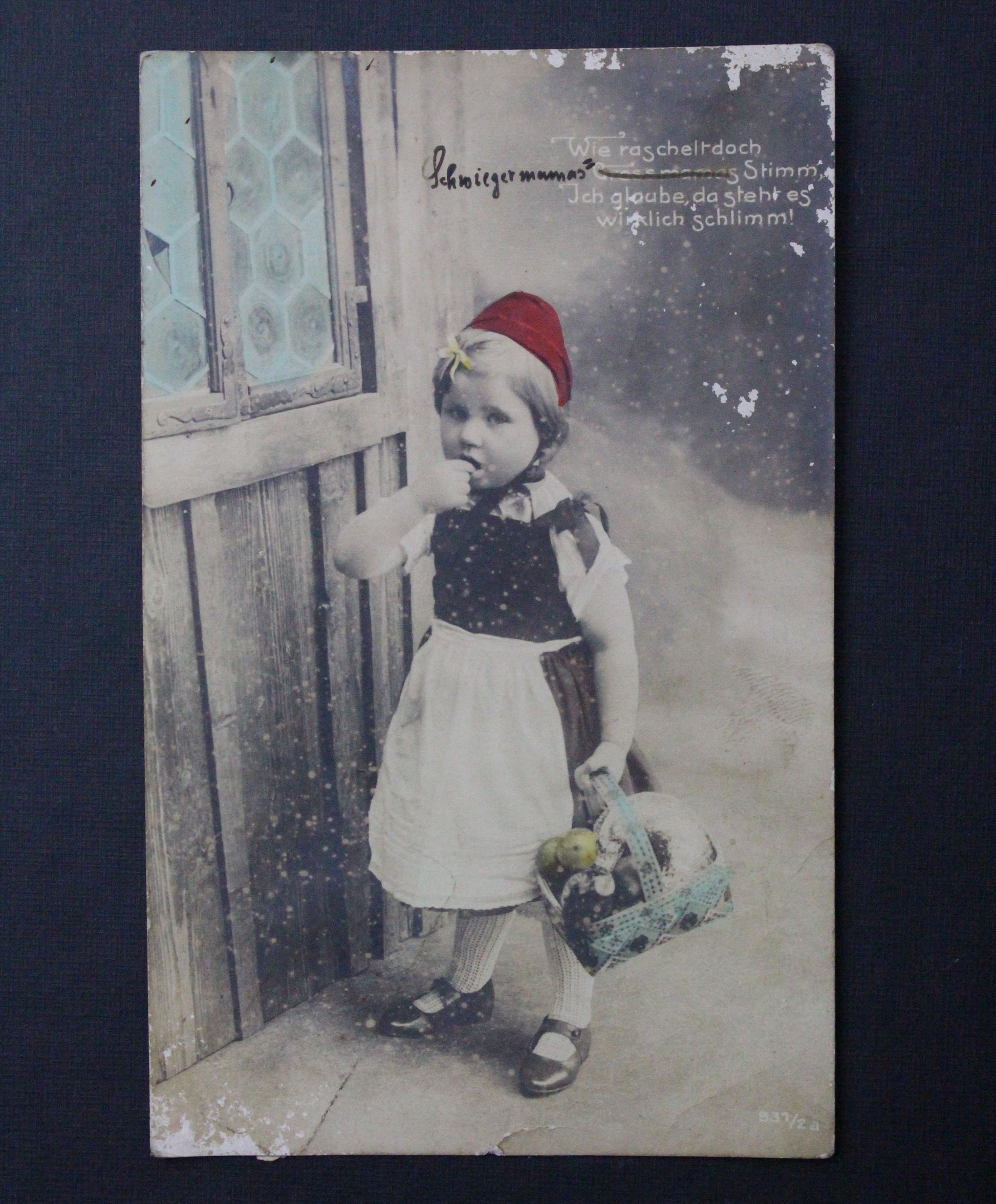 Starý německý pohled dítě s košíčkem holčička