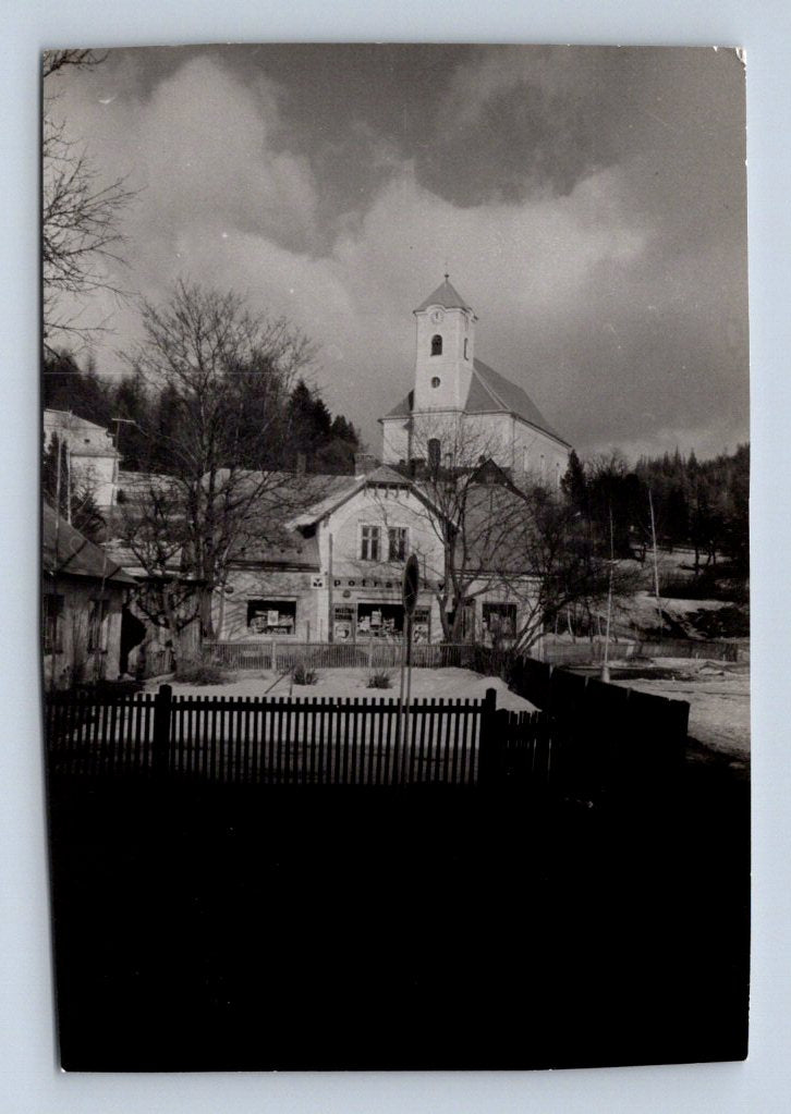Pohlednice česká vesnice potraviny kostel město (P1415)