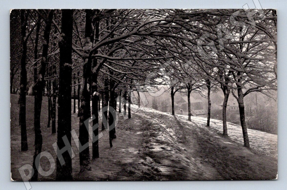 Starší pohlednice zachycující zimní období v lokalitě Jindřichův Hradec u svatého Jakuba. Na fotografii je vidět zasněžená cesta lemovaná stromy, která vede do klidného zimního zákoutí s viditelnými domy v pozadí. Pohlednice je černobílá a pochází z vydavatelství J. Boukala v Jindřichově Hradci. Vhodný k sběratelským účelům nebo jako dekorace pro milovníky historických a přírodních motivů z ČR.