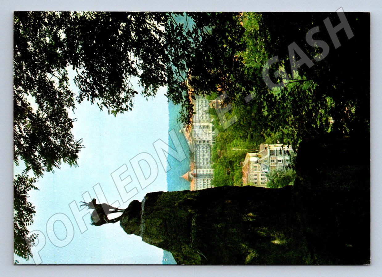 Pohlednice z roku 1973 zachycuje pohled z Jeleního skoku k sanatoriu Imperial v Karlových Varech. Na přední straně je krásný přírodní výhled se sochou jelena na skále, obklopený stromy a zelení, s pohledem na budovy sanatoria v pozadí. Na zadní straně je psaný dopis adresovaný do Duchcova, opatřený poštovním razítkem z Karlových Varů a známkou Československa s nominální hodnotou 30h. Pohlednice je v zachovalém stavu a představuje zajímavý historický a sběratelský kousek z období 70. let v Československu.
