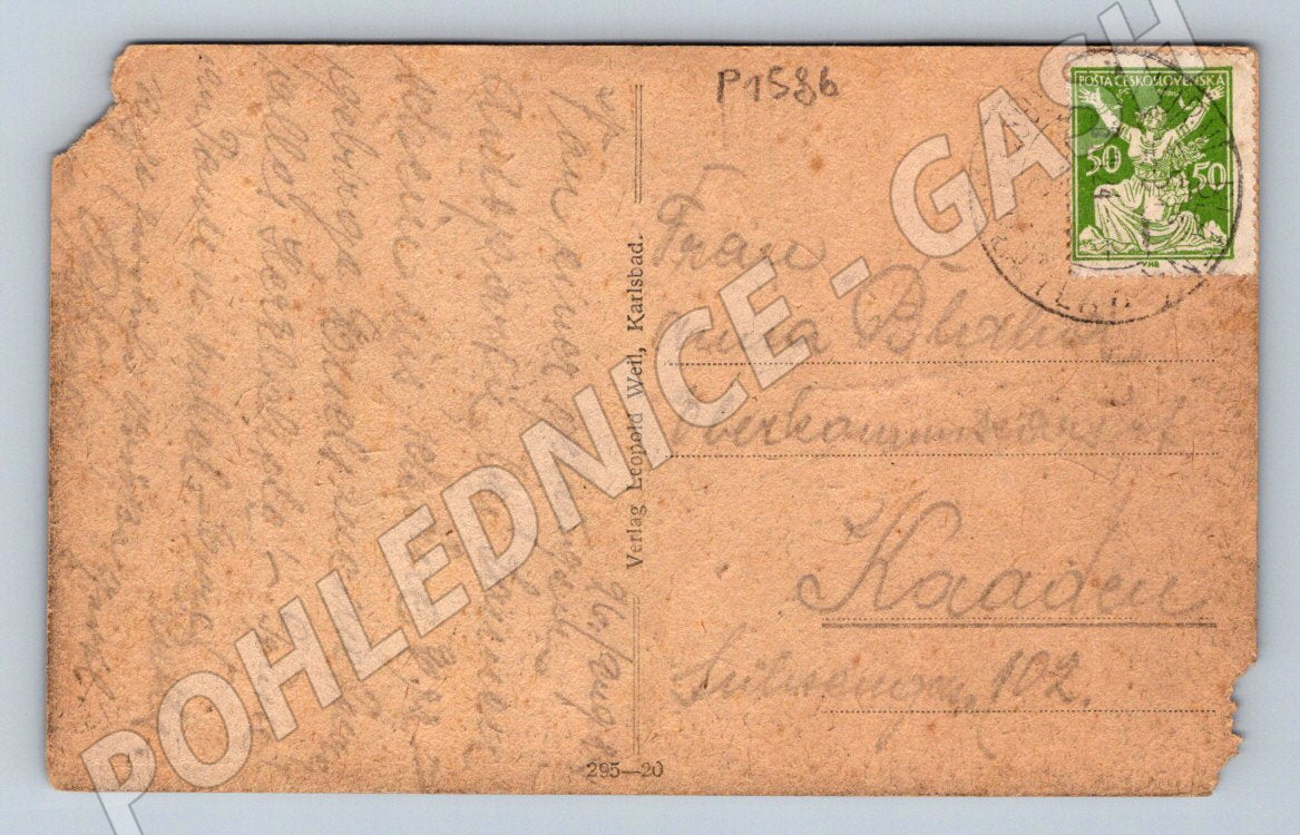 Starý pohled Platten (Hora Svatého Šebestiána) do 1950, prošlá poštou