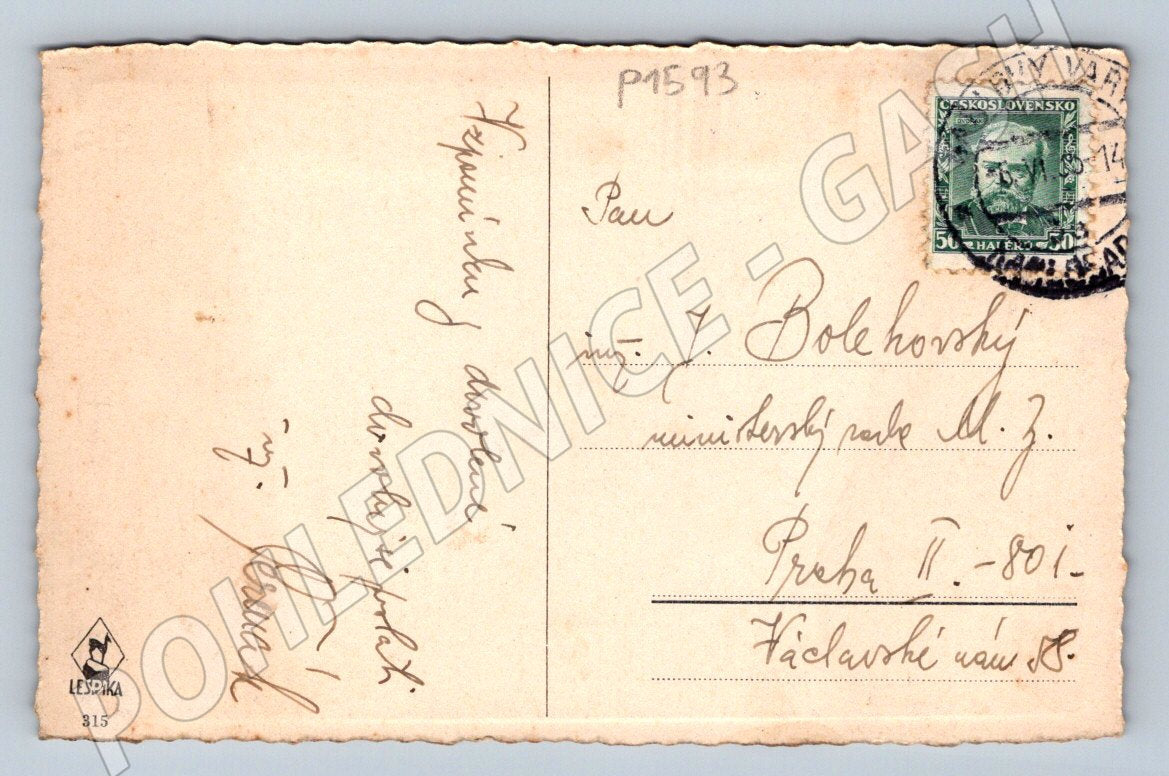 Starší pohlednice zobrazující Parkhotel Pupp v Karlových Varech. Pohlednice je v černobílém provedení, zřejmě z první poloviny 20. století, s razítkem a známkou Československa na zadní straně. Pohlednice má lehce opotřebované okraje, charakteristické pro vystávání a stáří. Vynikající sběratelský kousek z kategorie historických pohlednic významných českých lázní a architektonických památek.