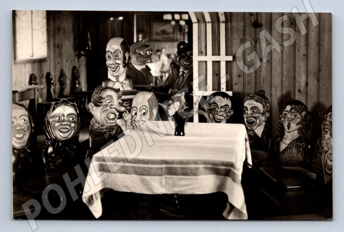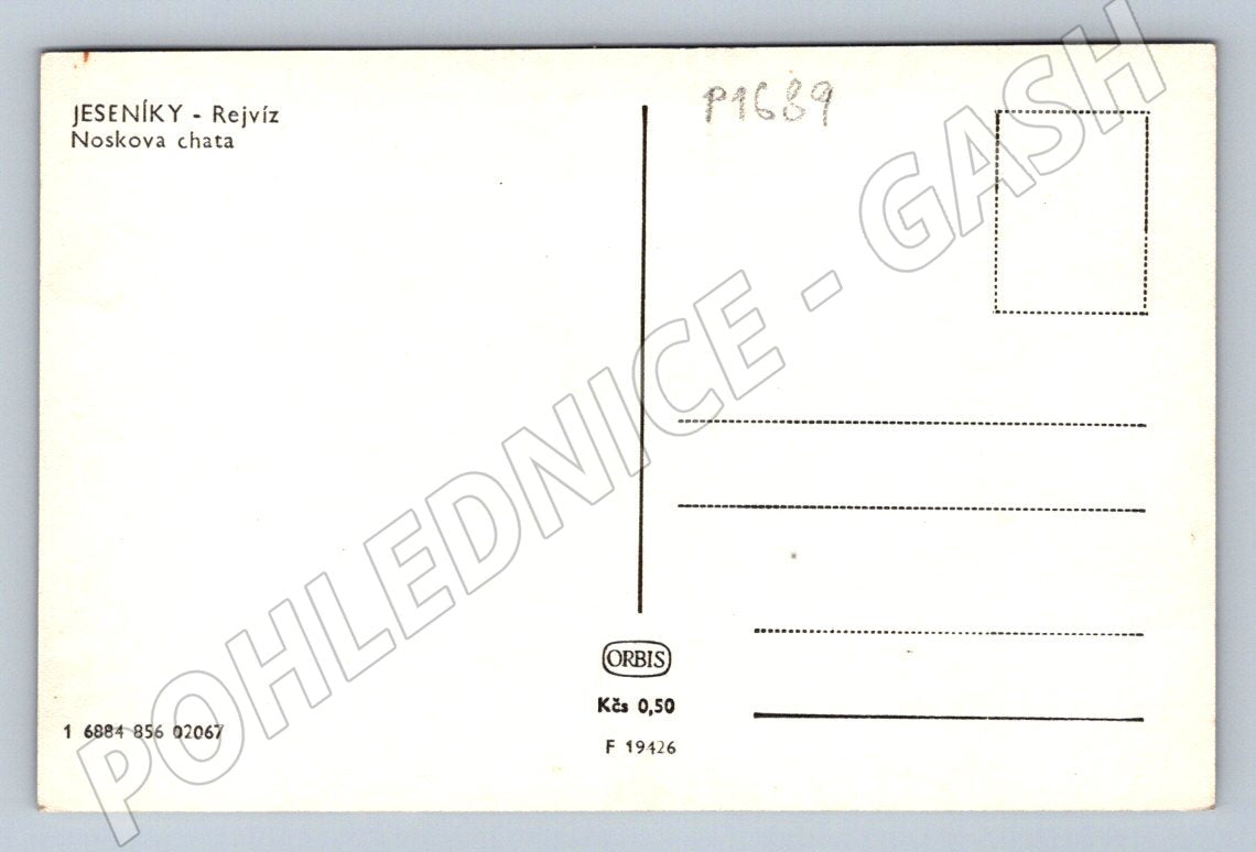 Originální černobílá pohlednice znázorňující interiér slavné Noskovy chaty na Rejvízu v Jeseníkách. Na pohlednici jsou zachyceny ručně vyřezávané dřevěné židle s groteskními portréty postav, které jsou pro tuto chatu typické. Fotografická kvalita pohlednice je velmi dobrá, lícová strana je bez popisu, rubová obsahuje základní informace o místě a prostoru pro známku i adresu. Pohlednice je vhodná pro sběratele regionálních památek, milovníky Jeseníků, zájemce o lidové řemeslo i turistiku. Stav pohlednice je velmi dobrý, bez známek použití.