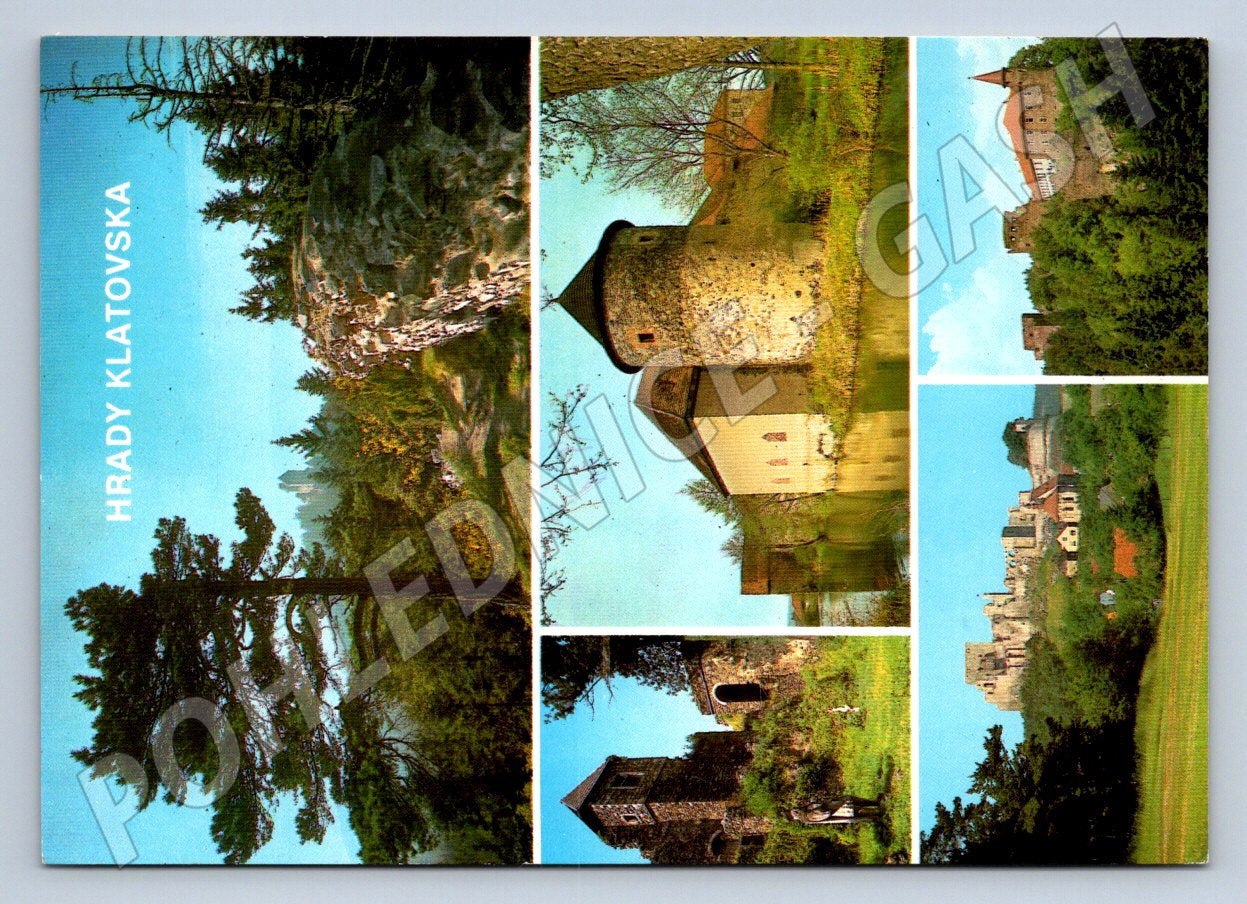 Nabízím originální pohlednici s motivem Hrady Klatovska. Pohlednice zobrazuje koláž několika významných hradů západních Čech: Kašperk, Klenová, Švihov, Rabi a Velhartice. Jedná se o klasickou tištěnou pohlednici z produkce PRESSFOTO Praha, vydanou na podporu cestovního ruchu (rok cca 1980). Na zadní straně vyznačen prostor pro psaní i adresu, nechybí ani informace o jednotlivých památkách. Výborný sběratelský stav, bez popisu a poškození, skvělý přírůstek do sbírky tematických pohlednic zaměřených na české hrady. Vydavatel: Tisk Severografia, Červený Kostelec.