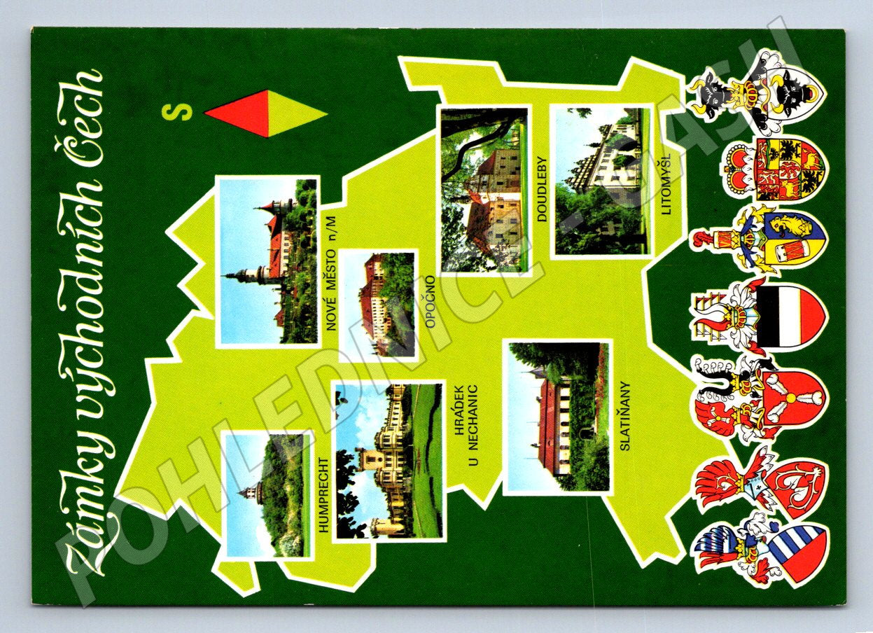 Pohlednice Východní Čechy zámky koláž znaky ČSSR (P1763)