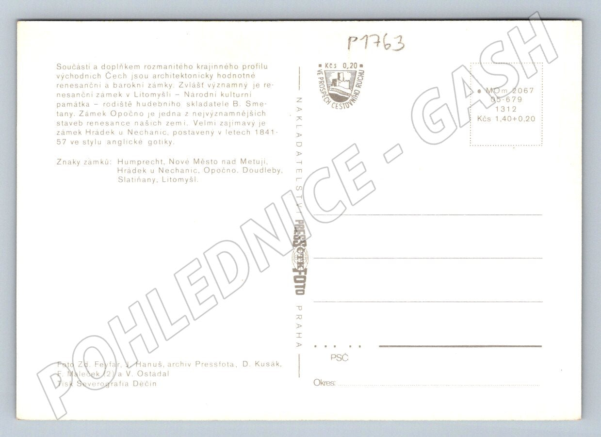 Pohlednice Zámky východních Čech - koláž, znaky, ČSSR