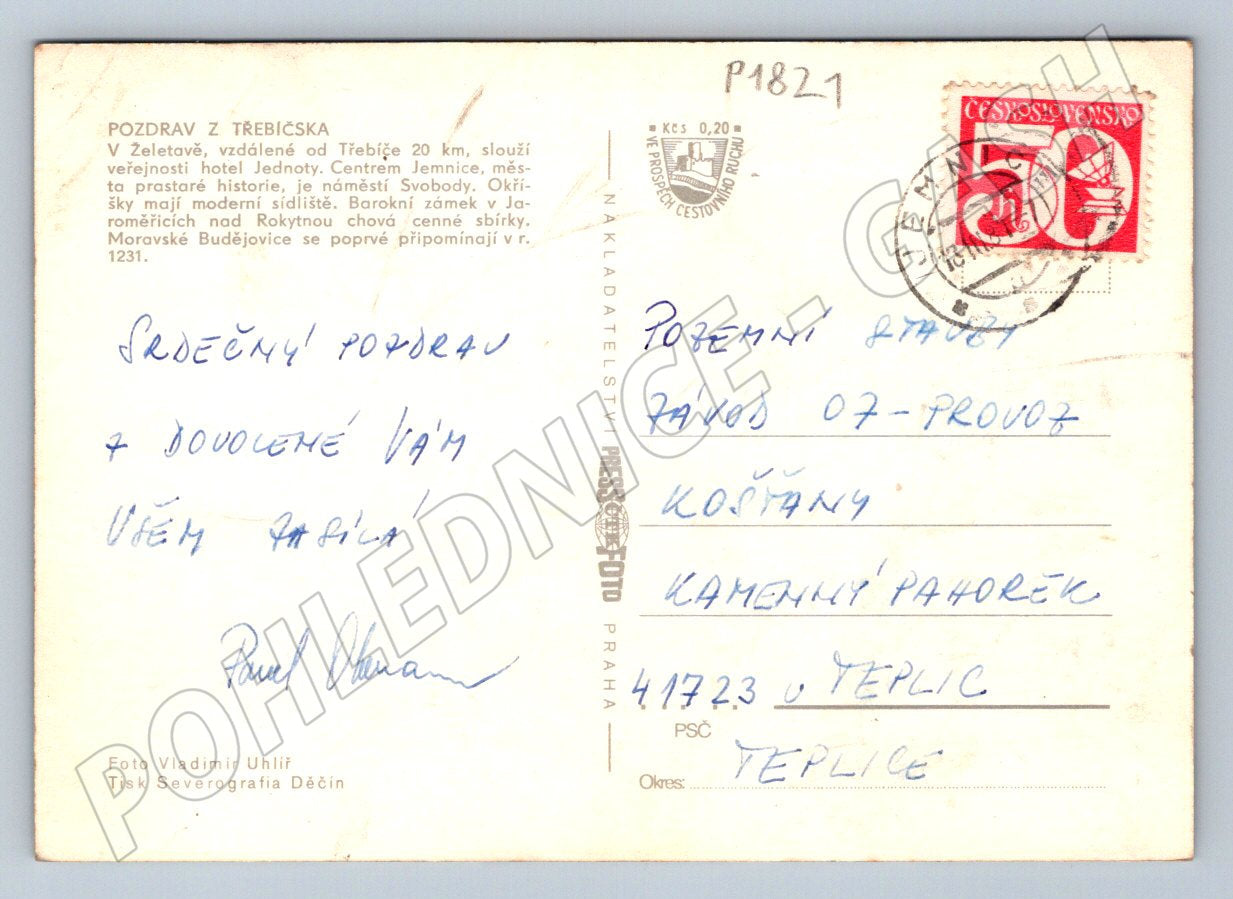 Pozdrav z Třebíčska – více pohledů, odeslaná pohlednice