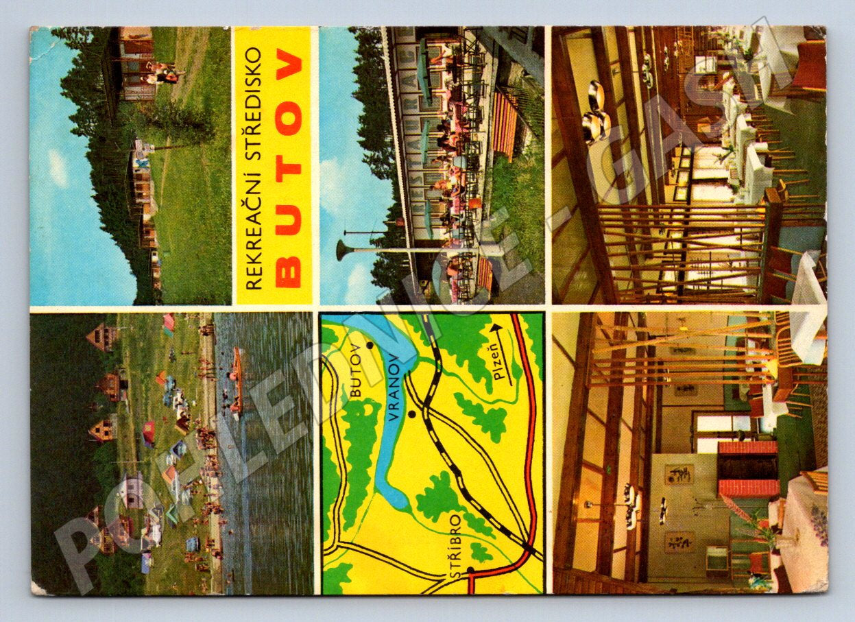 Pohlednice zobrazuje rekreační středisko Butov v Československu, které nabízelo pobyty u přehrady Hracholusky. Na přední straně je několik fotografií zachycujících exteriér chatové osady, koupání ve vodě, jídelnu a část vnitřního vybavení restaurace. Jedna část pohlednice je věnována i orientační mapce s vyznačením Butova. Pohlednice byla odeslána z Československa a je opatřena dobovou známkou. Na zadní straně je rukou psaný osobní pozdrav z dovolené. Ideální k rozšíření sbírky pohlednic s tématem českých rekreačních lokalit a životního stylu druhé poloviny 20. století.